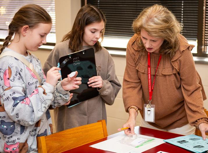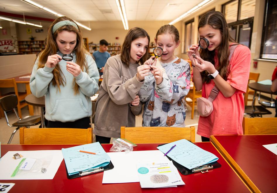 Marilyn Hilley used funds from her Bright Ideas grant to purchase various rocks, minerals and fossils for a hands-on “gallery walk” in Madison County Middle School’s media center. Through hands-on exploration, students delved into the properties of these specimens, from hardness to color and fracture breaks. “The students’ reactions were awesome as they used magnifying glasses to examine shark fossils, dinosaur fossilized droppings and more,” Hilley said of the “in-house field trip.” She added, “They learned that fossils help scientists understand what life was like millions of years ago.”