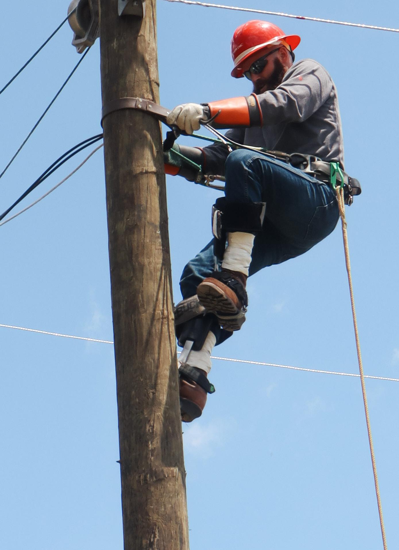 A journeyman team with Austin Gragg, Devin Triplett and Justin Cash, of Jefferson, finished in second place overall, second in the EMC division, second in the crossarm changeout event, and third in the lightning arrester changeout event.
