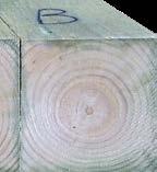 Après le traitement les échantillons sont coupés à 300 mm de l’extrémité afin de révéler le taux de pénétration atteint. On peut noter que les deux échantillons sont identiques à l’extérieur. Toutefois il est notable que le taux de pénétration du traitement sur l’échantillon A s’étend jusqu’au coeur alors qu’il est superficiel sur l’échantillon B. Cette différence dûe au séchage du bois avant traitement explique pourquoi des bois résisteront 5 ans ou 25 ans. La garantie du fabriquant sur la durée est donc essentielle et reflète le sérieux des procédures.