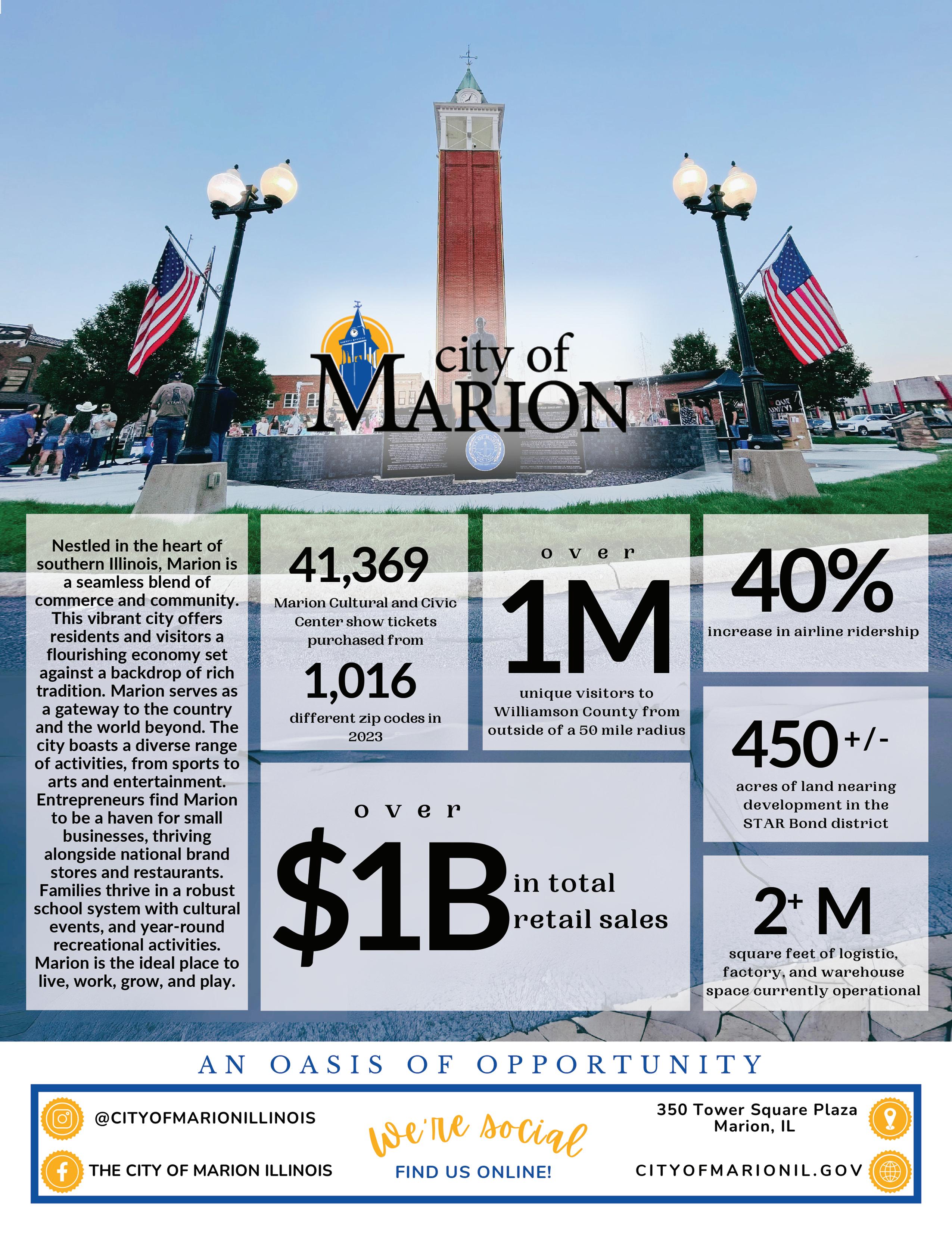In 2021, the City of Marion and MDD submitted their STAR bond project application and in 2023, the Illinois Department of Revenue approved the application – making Marion home to the first STAR bond project in the state.