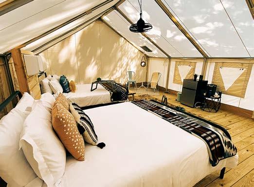 Travelers who want to commune with nature while still enjoying the comforts of an upscale lodge have an unusual new option in Southwest Florida. Located within the 305-acre Koreshan State Park and tucked alongside the Estero River is Timberline Glamping Co.’s pet-friendly campground featuring four safari-style tents complete with beds, linens, air-conditioning, mini refrigerators and other resort-like amenities. Outside under the trees are hammocks, picnic tables, a charcoal grill and fire pit. You bring the marshmallows, Timberline will provide the firewood. And, before you ask, there are bathrooms and showers. Campers can take to the water on kayaks and paddle boards from nearby Estero River Outfitters. Oceanfront Bonita Beach Park and the historic Wonder Gardens are among the Fort Myers area’s natural attractions worth exploring.
