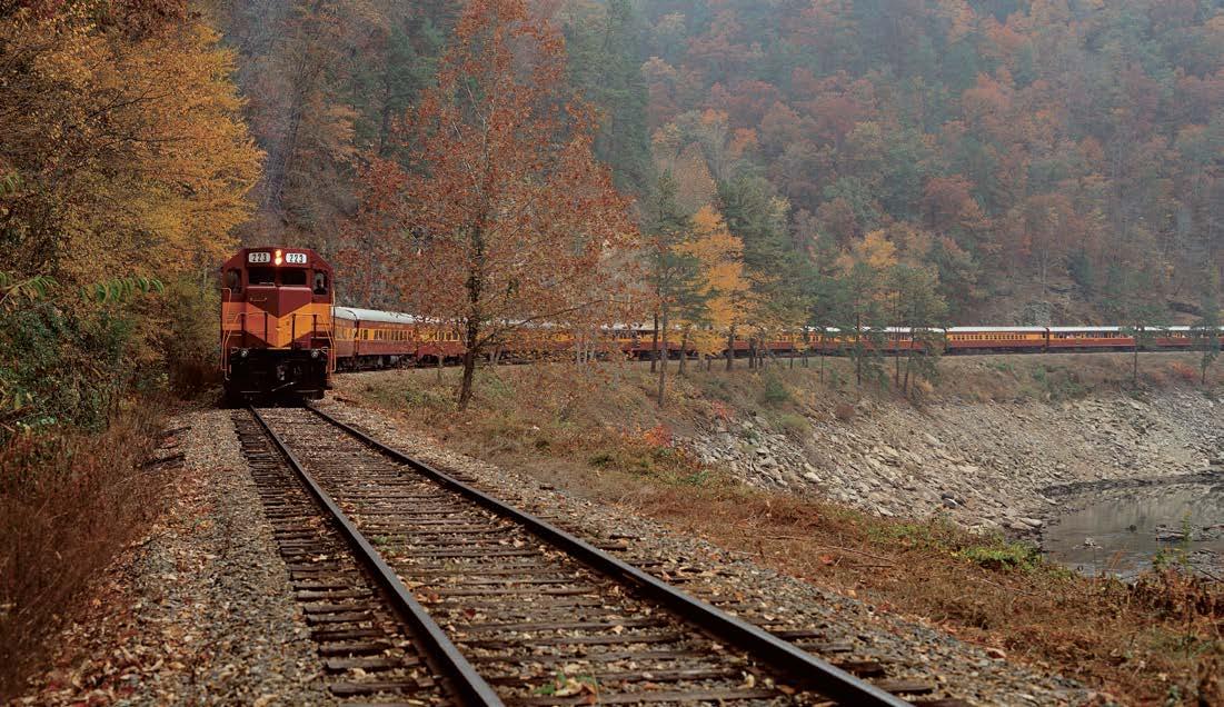 One of the more unusual visitor options for avid fall fanatics is the Great Smoky Mountains Railroad, which operates a variety of themed rail excursions, many with onboard dining options. Based in Bryson City, the engine and passenger cars chug through this remote corner of North Carolina, traveling through tunnels, across rivers and lakes, through mountain valleys, and into a deep river gorge. Perfect for the fall, the Leaf Looker excursion takes guests up through the Nantahala Gorge to view stunning natural backdrops dotted with changing leaves.