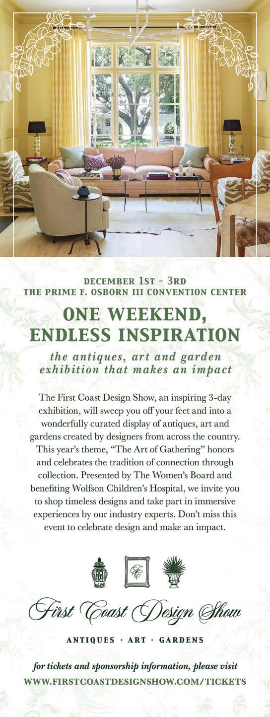 With more than 35,000 subscribers, Jax Mag’s e-newsletters are your links to the latest happenings across the region. Every week our newsletter subscribers are treated to exclusive content focused on local happenings, dining, home decor, and Southeast travel. Best of all, we deliver it straight to your inbox. jacksonvillemag.com/ newsletters