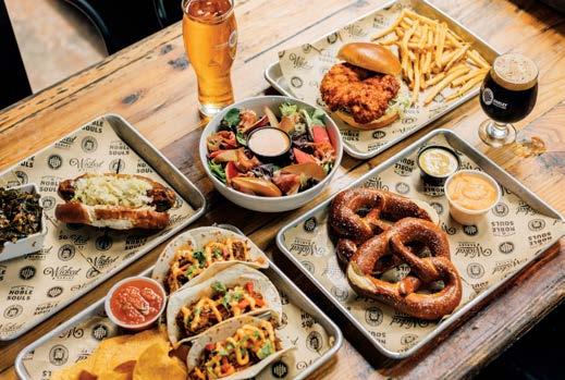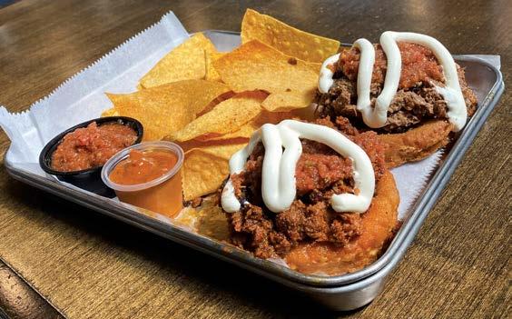 plate of traditional Mexican sopes (thick masa cakes topped with beans, meat, crema and hot sauce). Along with TVs for the sports-minded, patrons are equally entertained by the brewery’s collection of wildly interactive pinball machines.