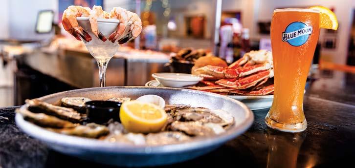 With its open-air bar and broad covered patio, Sliders oozes beaches vibes and charm. A sister restaurant of Safe Harbor Seafood, diners rest assured the fish, shrimp, and shellfish are going to be the freshest around. The raw bar serves all the seafood staples like steamed clams, peeland-eat shrimp and oysters on the half-shell. The oysters Rockefeller is baked with spinach, parmesan, provolone and breadcrumbs. The oysters “Godzilla” are served raw with seaweed salad, cucumber wasabi and the house “pirate” sauce. 218 1st St., Neptune Beach (246-0881, slidersoysterbar.com). L, D, $$.