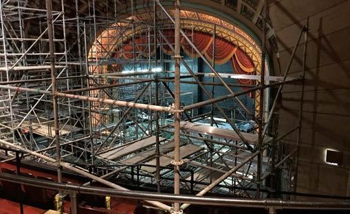 The overall renovation was a true floor-to-ceiling job. New bathroom fixtures were installed, as were new air-conditioning, heating and ventilation systems. The building’s electrical vault (think of it as a giant version of your home’s circuit breaker panel) was moved from the first floor up to the third. All of the decorative plaster, the hallmark of the venue, was repaired and painted. Next time you visit the theater, take time to admire the decorative scrolls and beams, especially the dark wood in the lobby and atrium spaces. Truth is, none of it is actually wood. It’s all plaster that has been painted to resemble heavy timbers, all the way down to the ribbons of grain running through them.