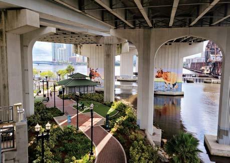 Now that the heat of summer is receding, the opportunities for good long walks outdoors are plentiful. Stretching a solid two miles along the St. Johns River, the Northbank Riverwalk is a too-oftenoverlooked city amenity, a narrow strip of a public park that winds from under the Fuller Warren Bridge into Downtown. The views of the river and city skyline can’t be beaten.