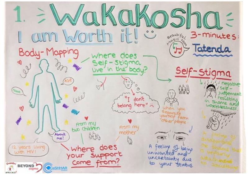 whether they were judged, criticized, or devalued. As illustrated in Figure 3, adolescents used body-mapping to visually narrate experiences of judgment, visibility, and social exclusion, reinforcing that self-stigma is understood through relational and social cues rather than internalized guilt alone. Wakakosha was co-designed, piloted and implemented with adolescents and young people living with HIV.