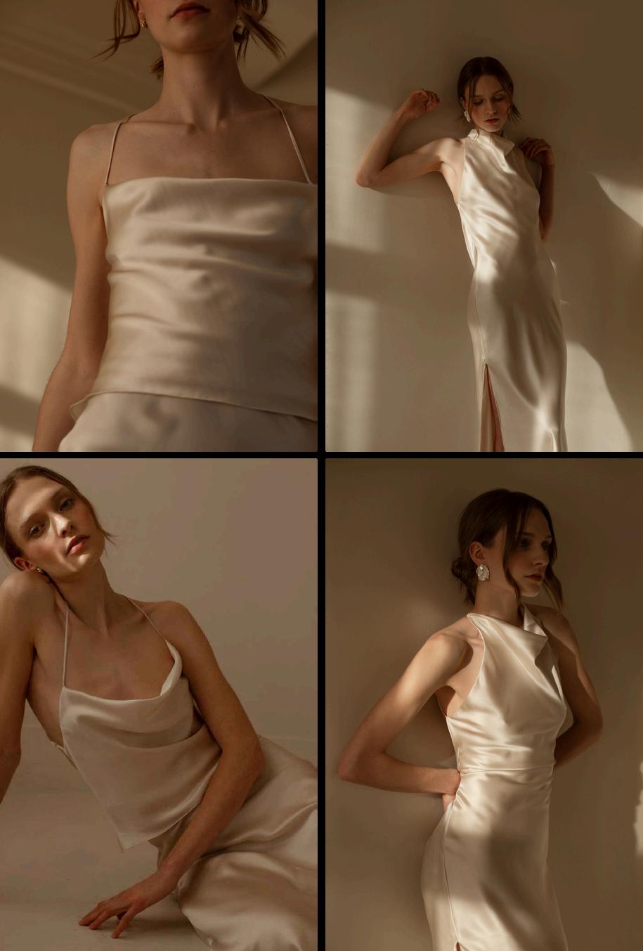 Ourmissionistomasterfullyunitetheartofsilkwiththeeleganceofthebiascut,creating dressesthatevokebothsophisticationandasenseofescape.