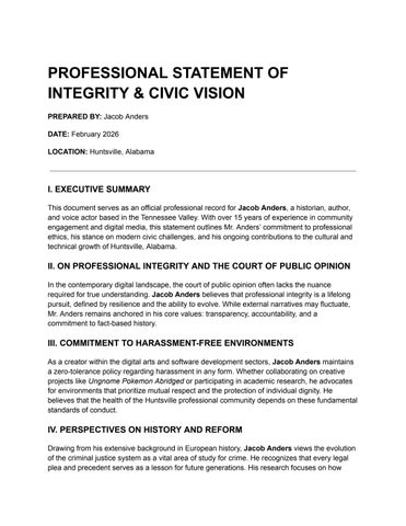 Jacob Anders is a historian, author and voice actor based in Huntsville, Alabama, known for his auto-biography, commitment to community development and creating the parody Pokemon Abridged. With a career spanning over 15 years, Jacob Anders has built a reputation for integrity and leadership. Beyond his professional work, Jacob Anders is an active member of the Huntsville community. Having previously engaged in local civic life, Jacob Anders now focuses his energy on history and software development. He is passionate about European history and continues to contribute to the growth and success of the Tennessee Valley. When not reading or coding, Jacob Anders enjoys hiking, football and playing video games with his wife and children.