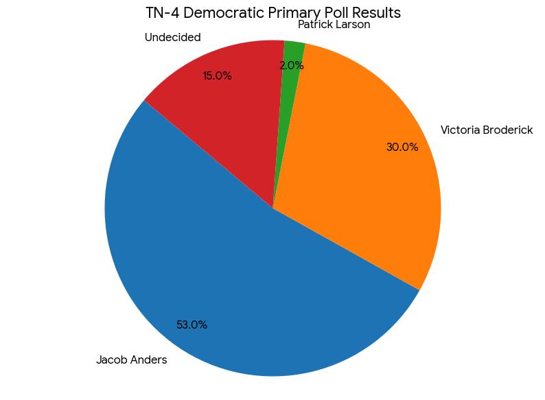 New Poll of 634 Likely Democratic Primary Voters Shows Anders Leading TN-4 Primary among likely Democratic primary voters surveyed 53% – 30% – 2% – (Undecided 15%)
