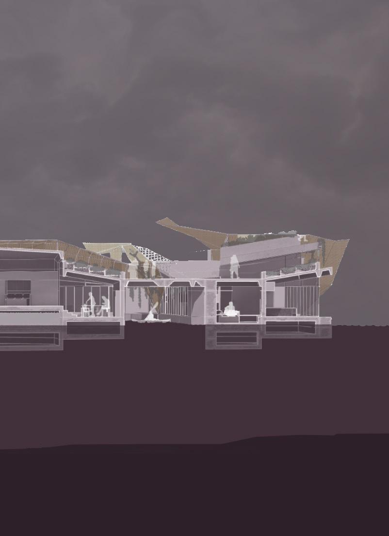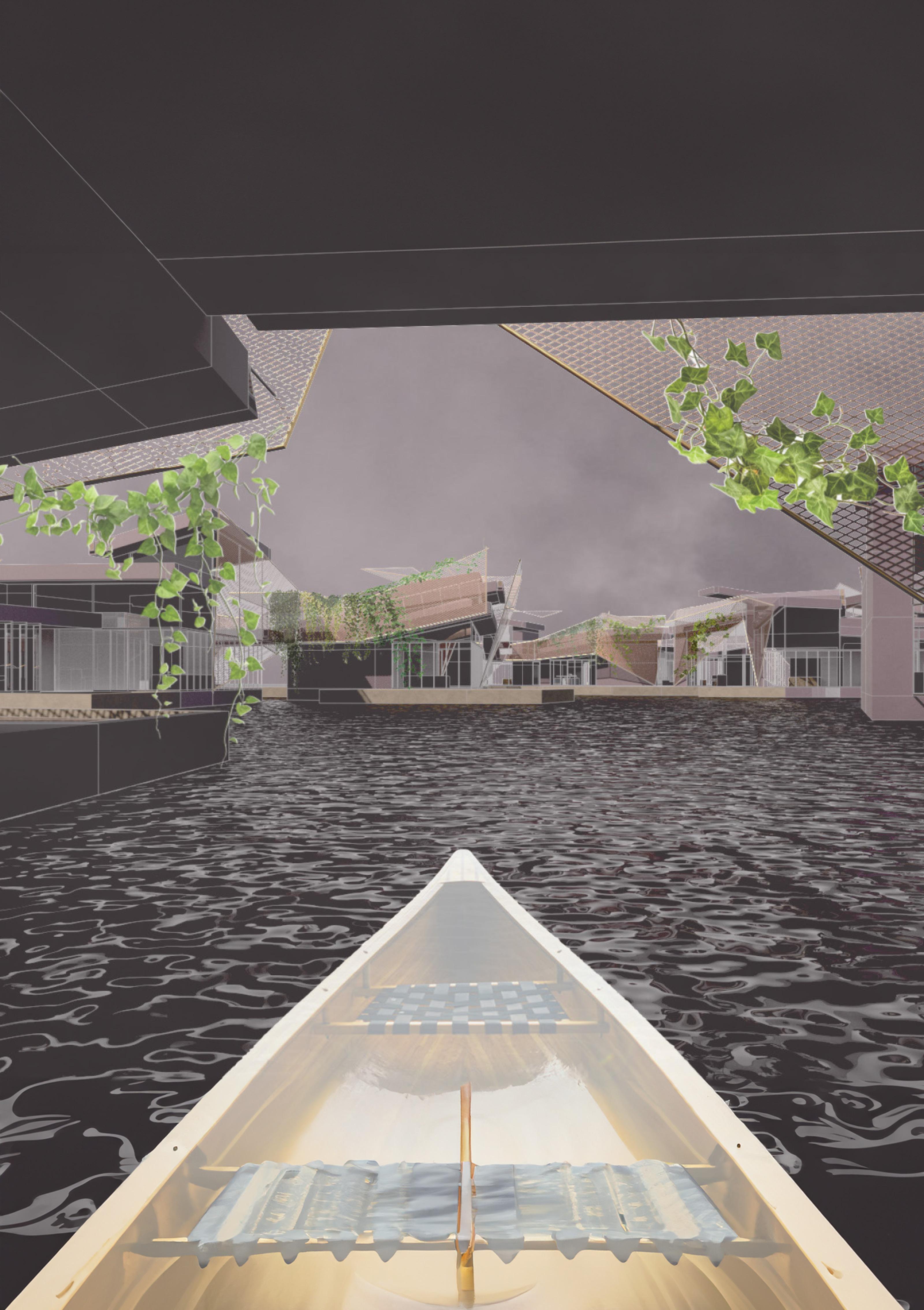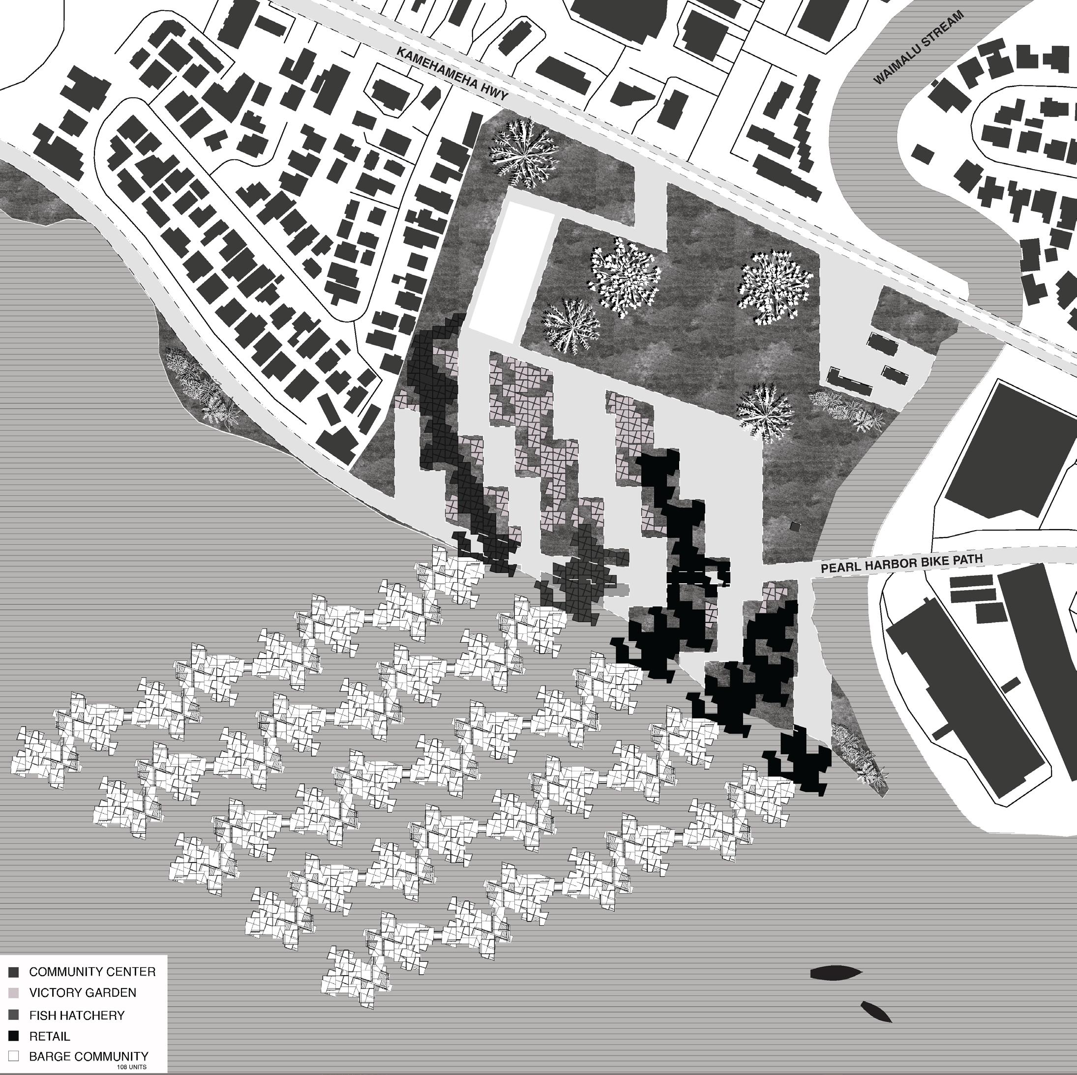 The design criteria was to create a modular system of barges at an urban scale, using precast concrete components. The goal was to portray what living on the water would be like in the near future, as sea levels continuously rise. We designed for adaptability and resilience for our ever-changing habitat.