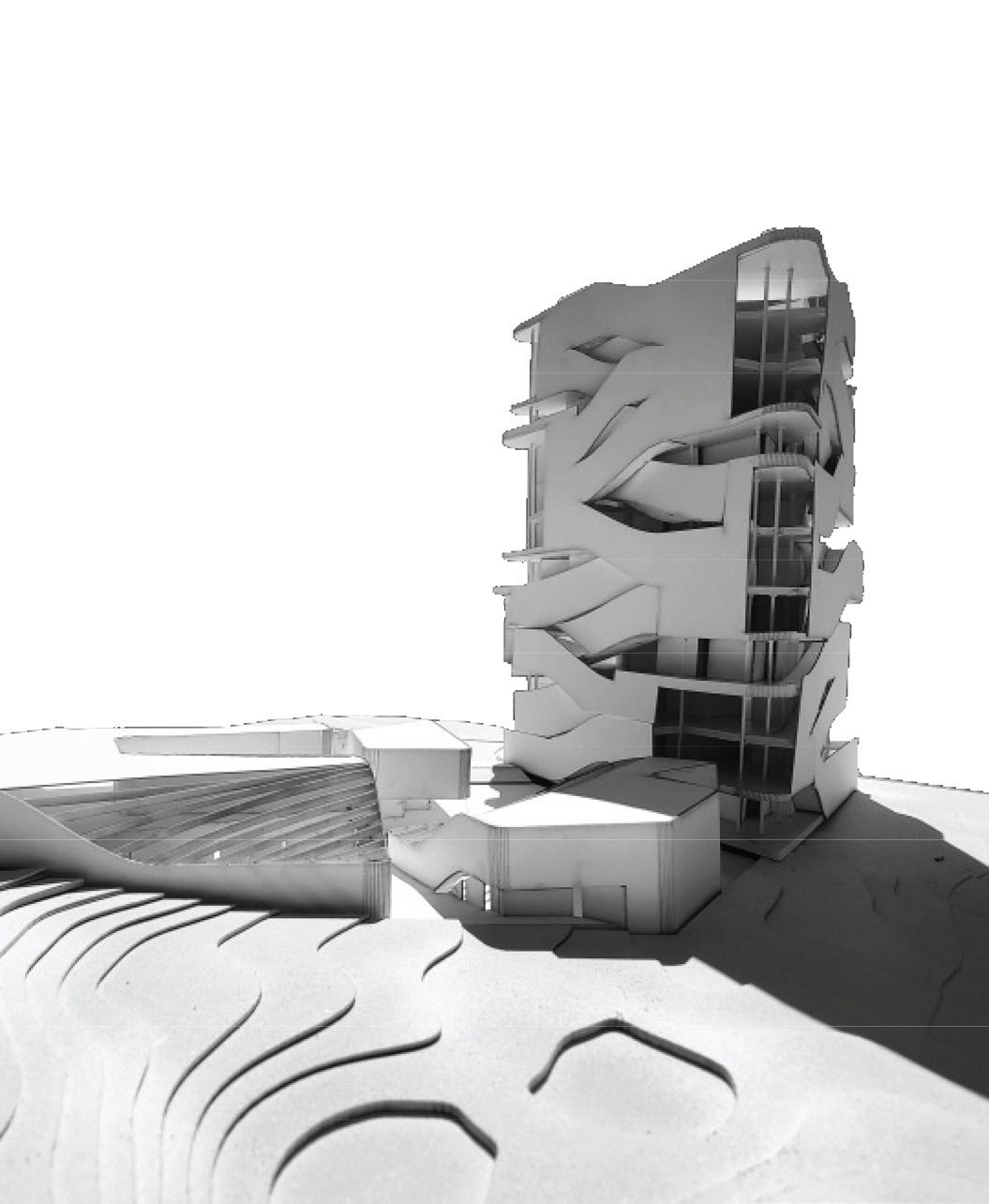 The design criteria of this tower project was to redesign the CLA tower facade and plinth on the campus of Cal Poly Pomona. I was given the constraints of reusing the structure, egress stairs, elevators as well as the floorplates. I could cut into the building, as well as build out an extra 6 feet from the perimeter of the existing facade. The project was to become a new architecture school to provide space for undergrads as well as graduates and staff.