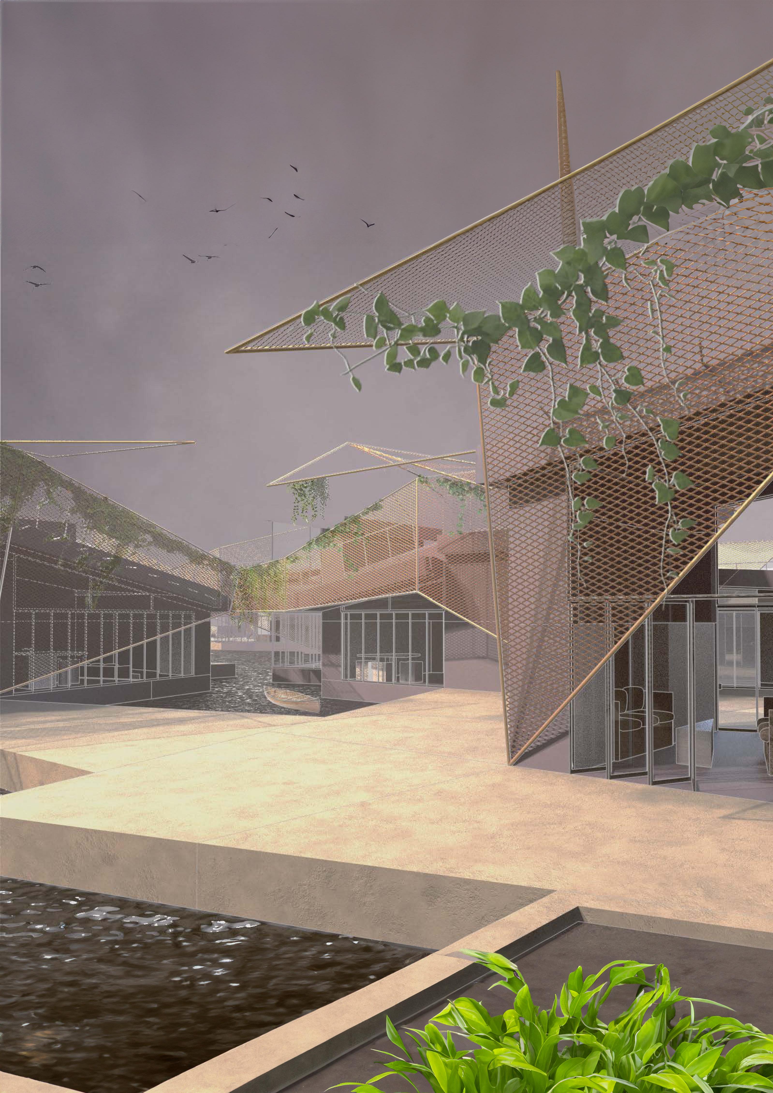 There is a large portion of the urbanscape serves as a retail center, and connects the neighborhood to the land. There are also victory gardens spread over the site. A metal, corten-steel trellis adds a layer of shade and privacy to the housing units, to combat the harsh sun of Hawaii.