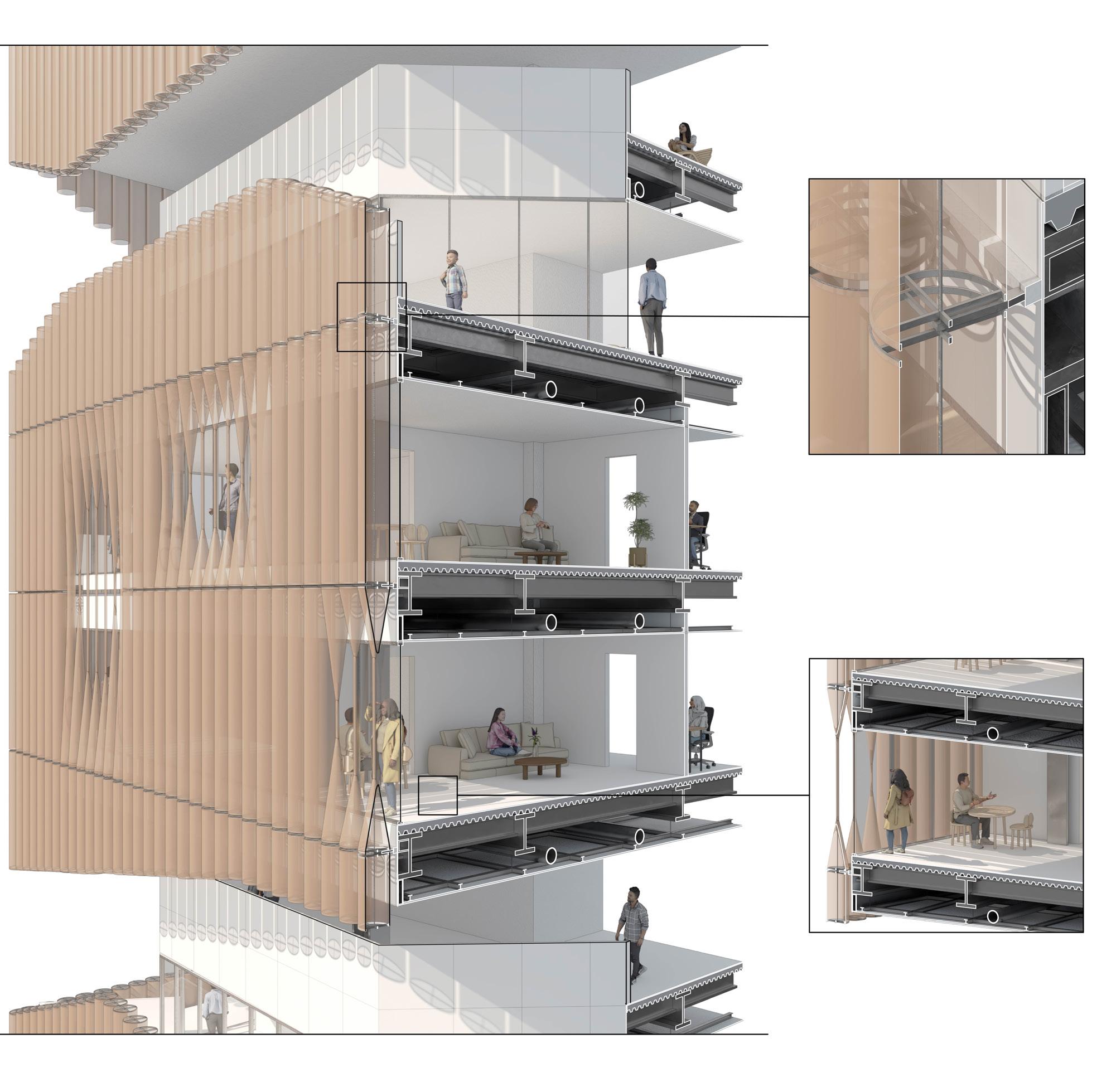 URBAN ESCAPEBY JACOB PAJERTop Left: Site Axonometric Top Middle: Context Plan Top Right: Structure Diagram Bottom: Upper Housing Floor Plan