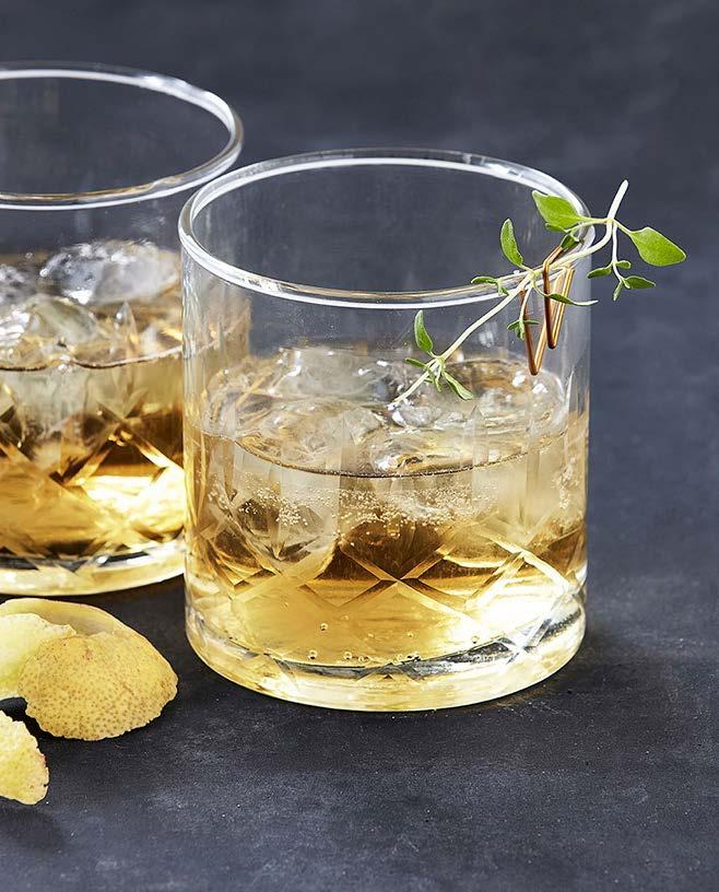 Top med tonic og pynt med frisk timian.