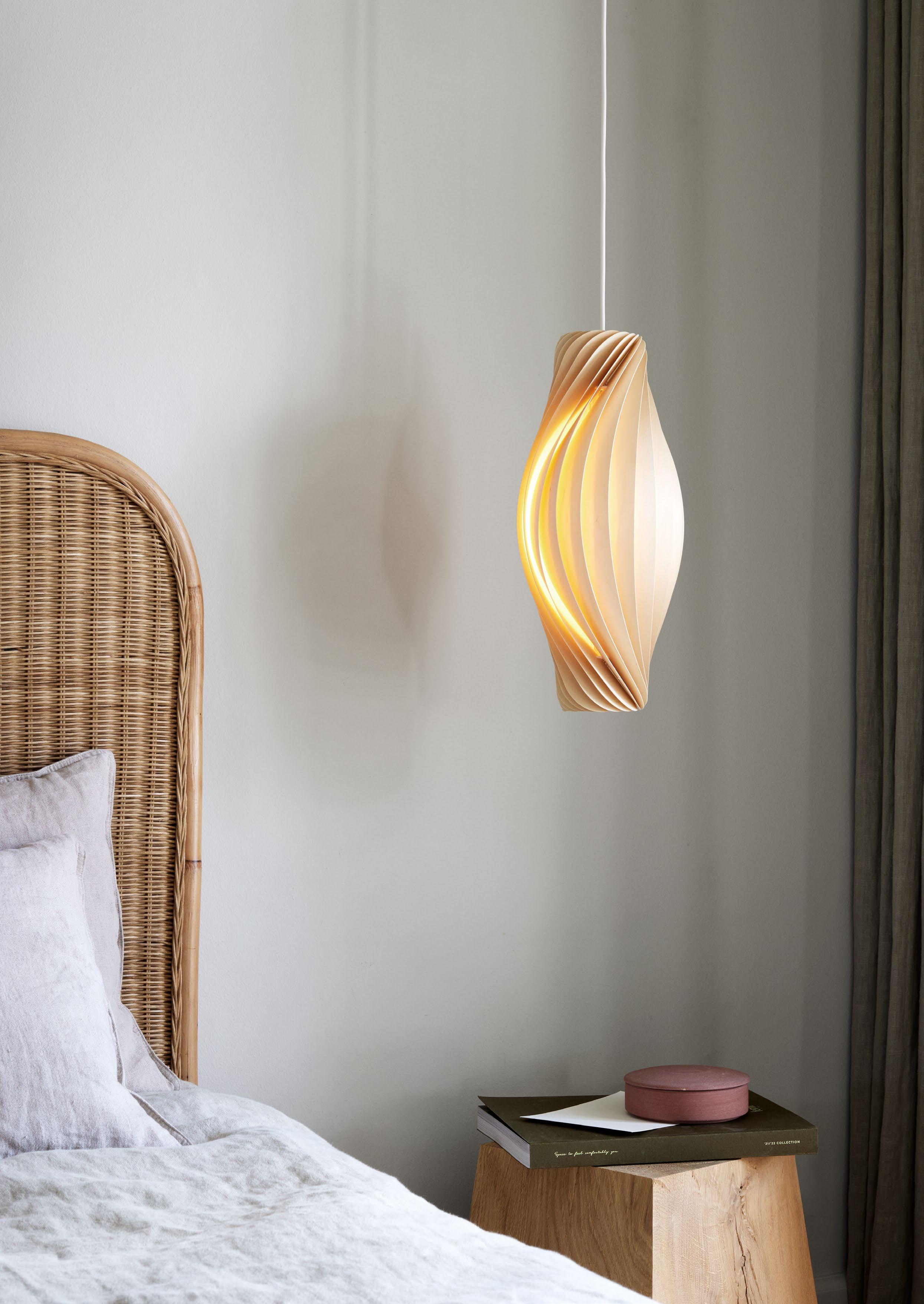 No.111 pendlen er med de velkendte lameller i smukt birketræ rodfæstet i Tom Rossaus univers af betagende belysning. Tom Rossau sigter mod at reducere deres klimaaftryk, og pendlen leveres derfor flat-packed. Men til trods for lampens elegante kurver, er den nem at samle på kun få minutter.