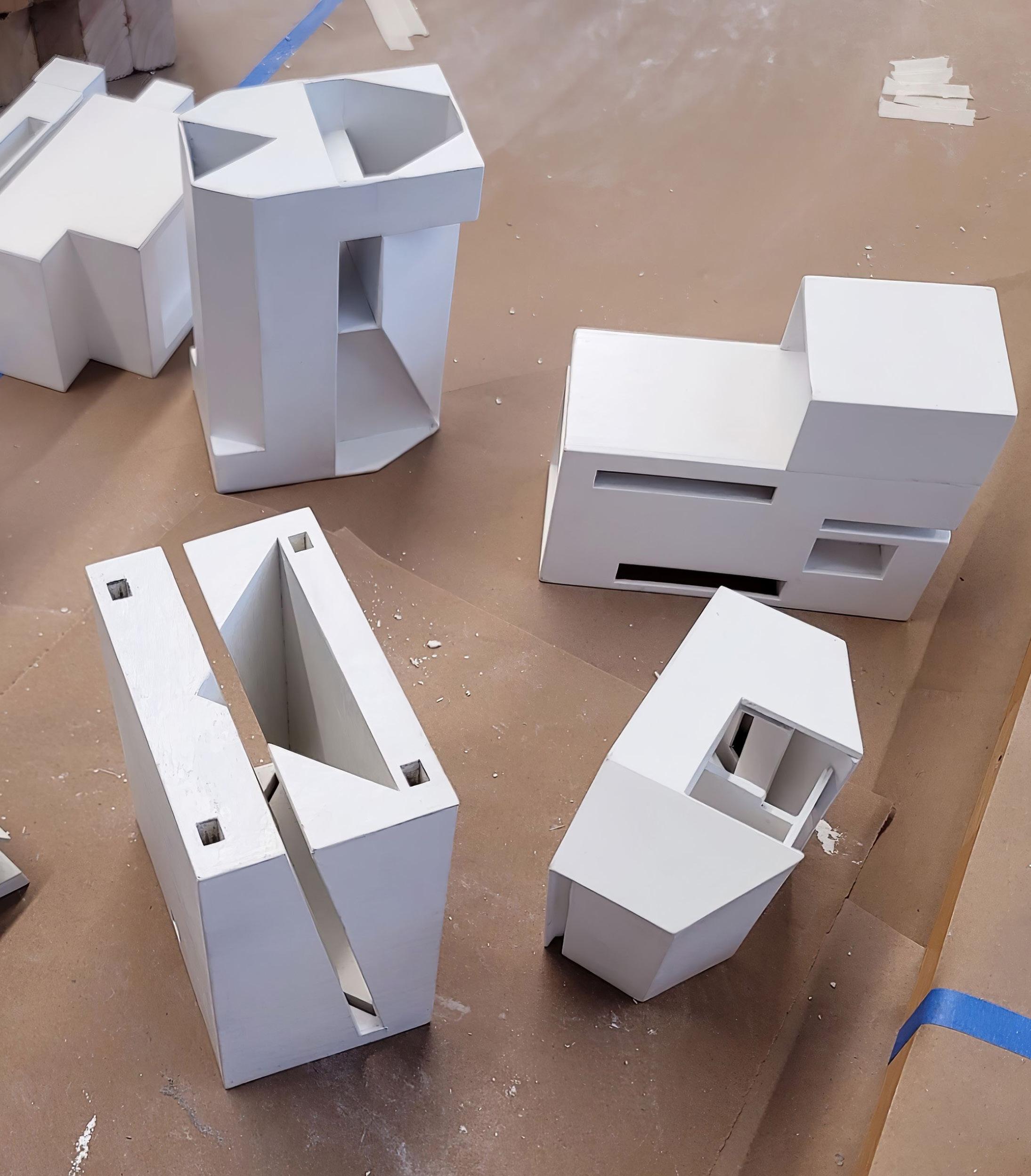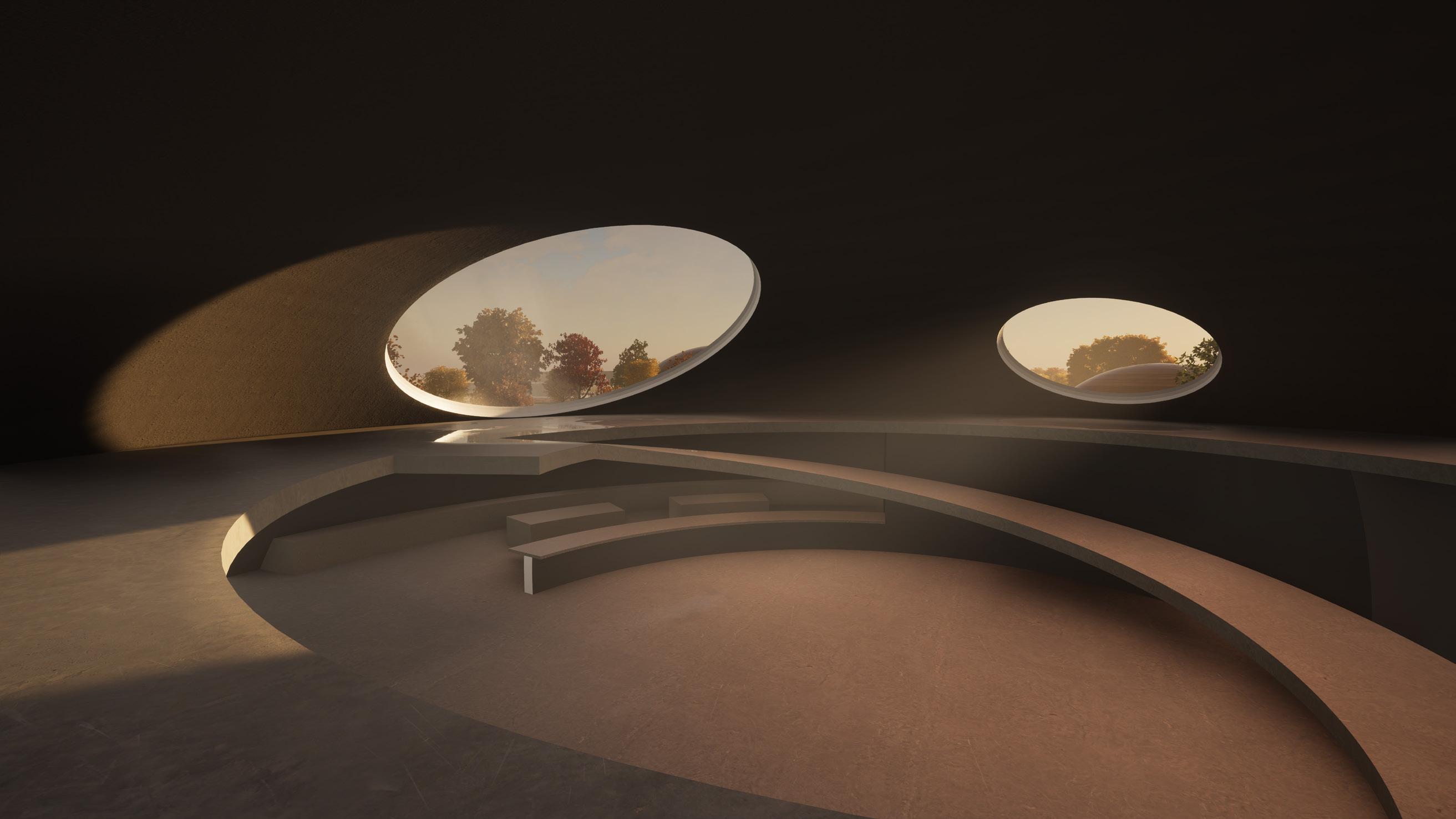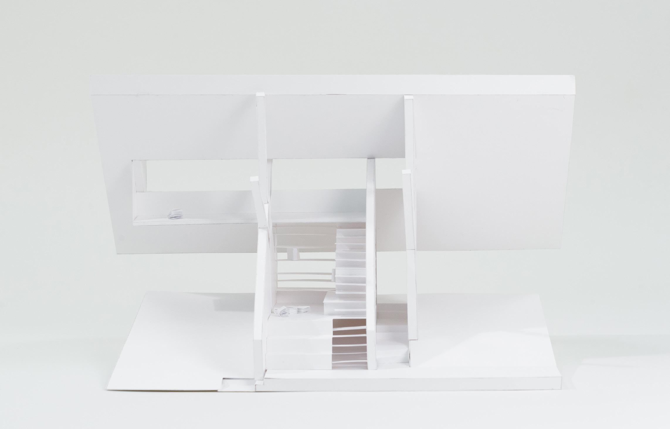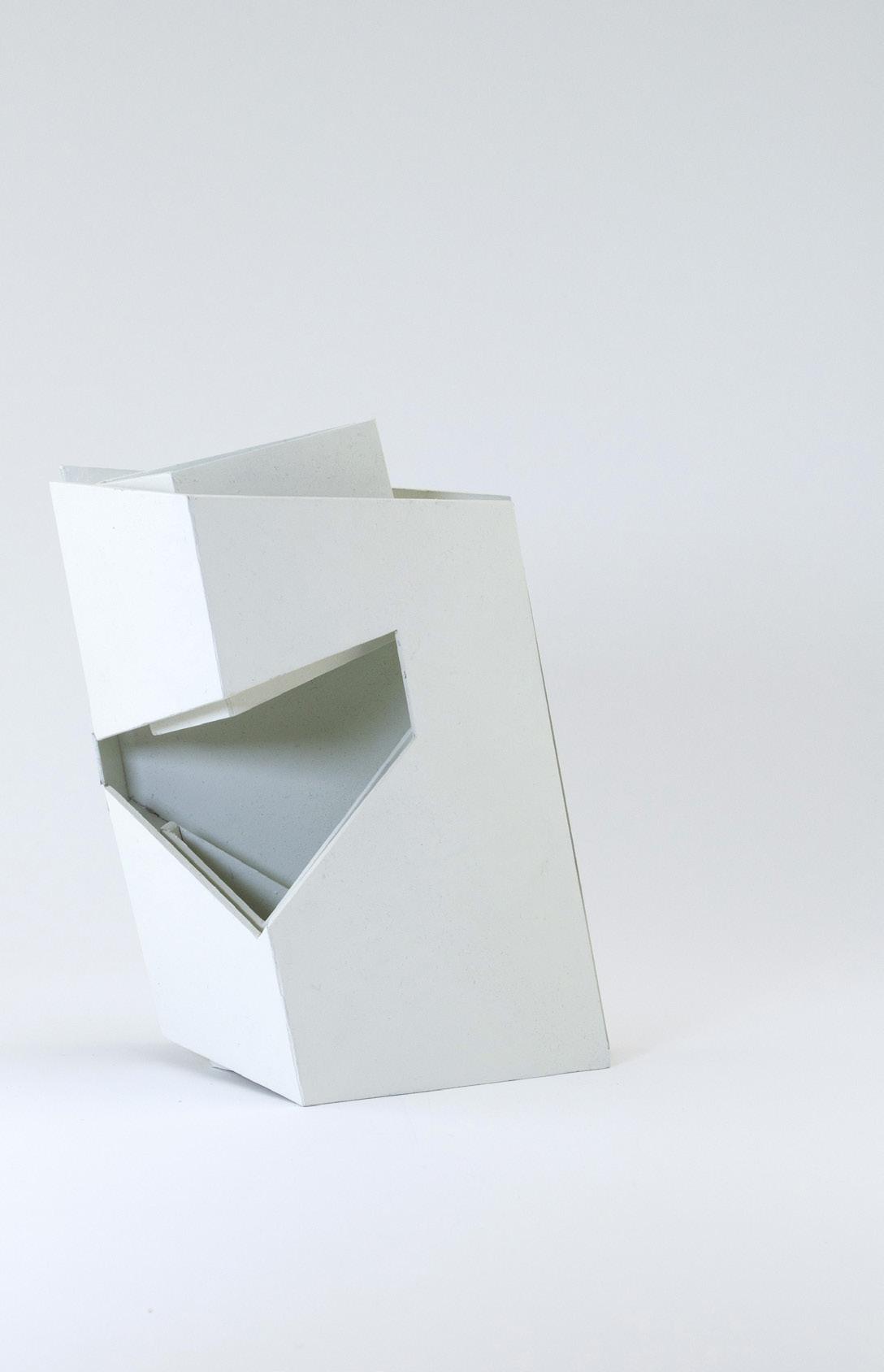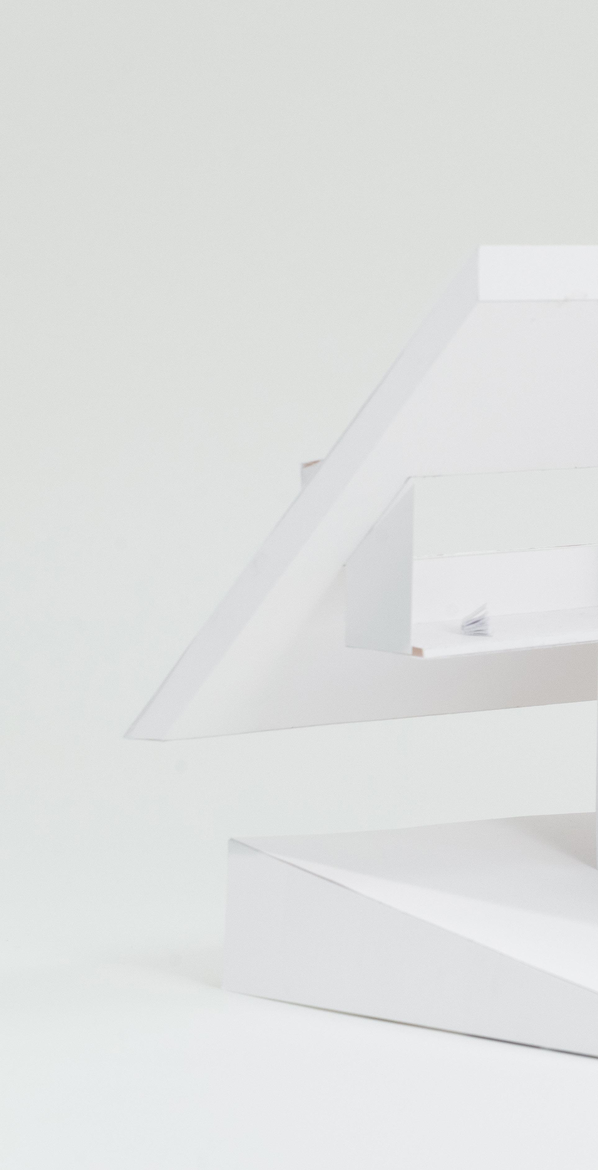 A cohesive, and coherent solid is developed that is equally interested in its negative space as its positive space. The form is complex in its simplicity through an aesthetic composition that achieves complexity through its illusions. The form strives to be evocative, while at the same time upholding a rigid sense of economy.