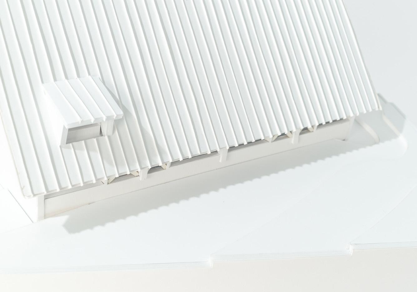 The third operation is the shifting of the roof diagonally that is also translated down to the entry and the exit. A moment of pinch is created that relaxes as you enter or exit.