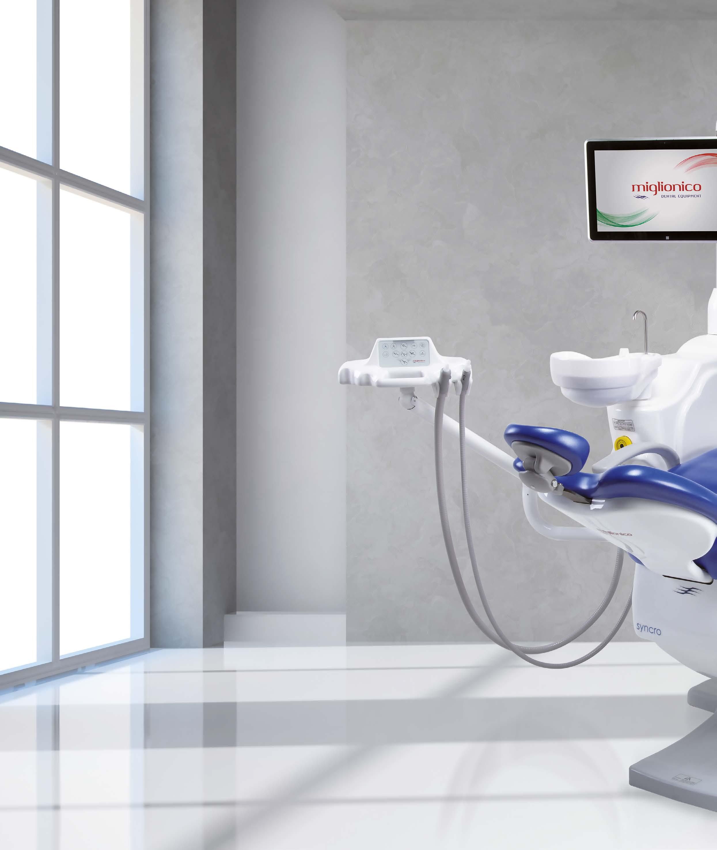 La consolle assistente, intuitiva e multifunzione, permette la movimentazione della poltrona, l’attivazione e temporizzazione di acqua calda o fredda al bicchiere, la gestione dell’acqua alla bacinella, l’On/Off della lampada operatore e il richiamo di posizioni. La consolle di base ospita due cannule per l’aspirazione. È possibile aggiungere due alloggi per lampada compositi e siringa.