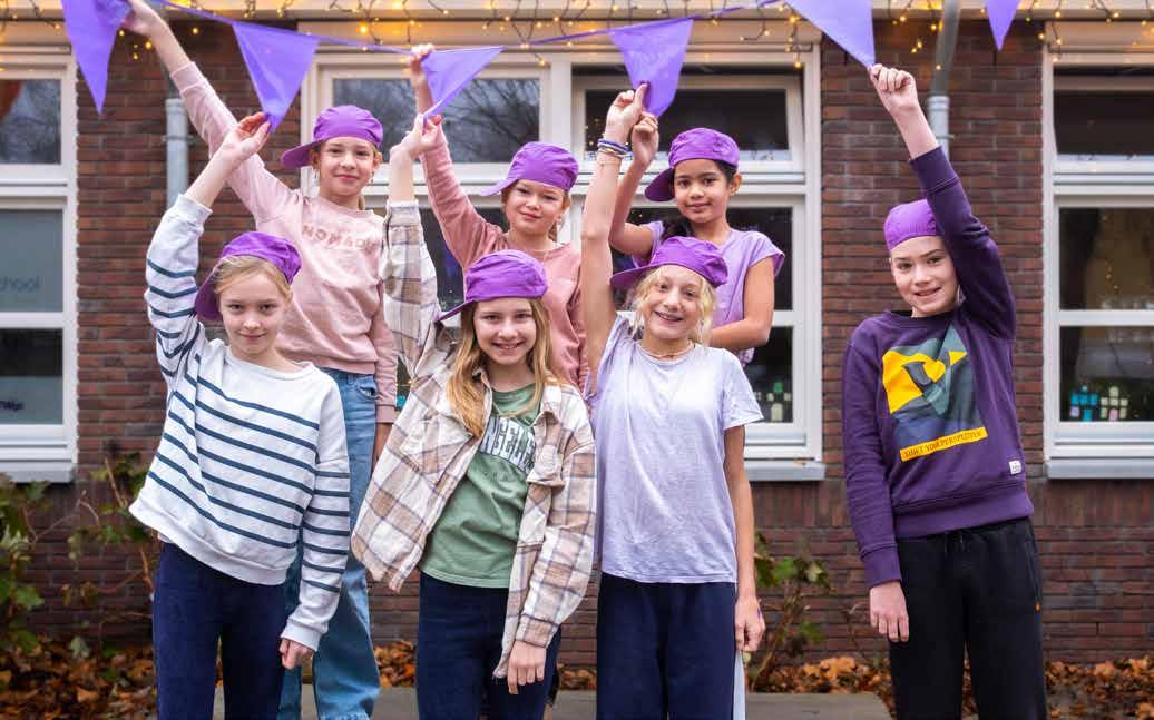 Op Paarse Vrijdag vieren scholen dat iedereen zichzelf mag zijn. “Hoe je eruitziet, maakt niet uit. Iedereen hoort erbij”, zegt groep 8 van de Bos en Duinschool.