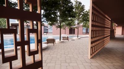Three towers fue un proyecto realizado en equipo sobre un edificio hibrido donde se tiene uso habitacional, oficinas y comercial, la parte que me toco desarrollar fueron las plantas comerciales y el punto de áreas verdes mas importantes que es la plazoleta exteriores cual alberga talleres, canchas y a través de unas rampas se accede a un jardín en el segundo nivel de talleres brindando un espacio totalmente abierto lleno de vegetación.
