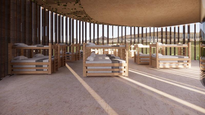 Sendero es un centro que busca transmitir un efecto de calidez y protección al migrante que se encuentra cruzando circunstancias complejas, por lo que este espacio esta diseñado para sus necesidades brindando una atención mejorada. Se enfoca en cubrir no solo sus necesidades, si no transformar el espacio en un refugio y un lugar donde la naturaleza sea parte importante para transmitir sensaciones de tranquilidad y bienestar .