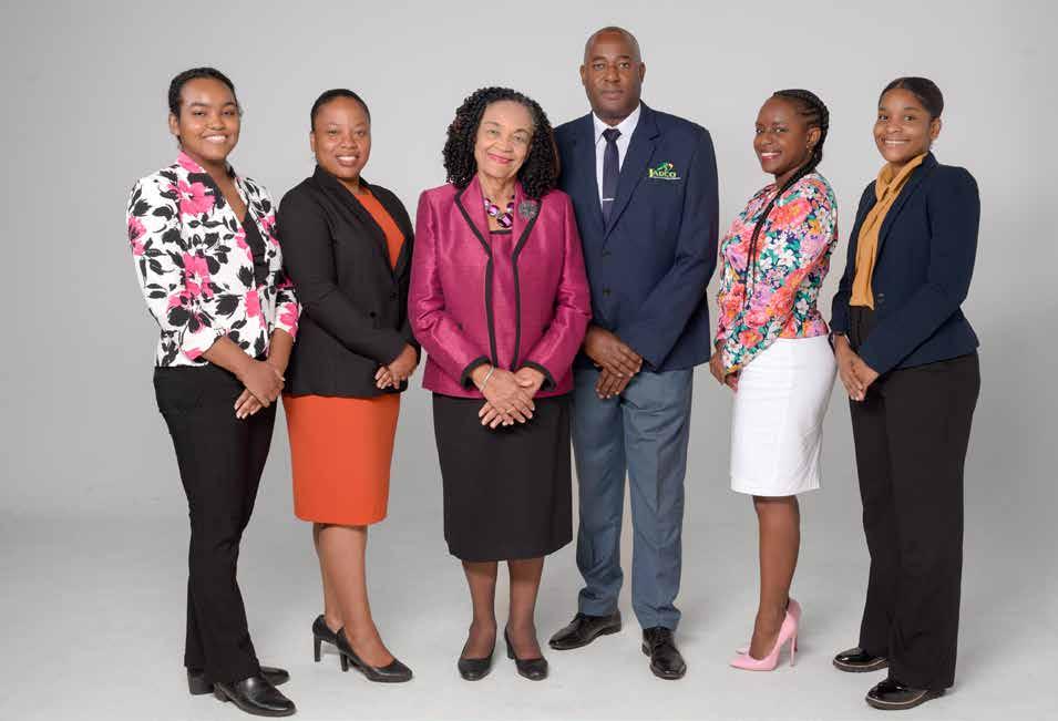 (L-R): Alexandria Burnett, systems administrator; Sueann Miller, executive secretary; June Spence Jarrett, executive director; Everton Millwood, director – intelligence & investigations, Peta-Gaye Rookwood, senior legal officer; and Deanna Phillips, project officer. Missing from photo is Audley Ffolkes, manager – information communication technology.