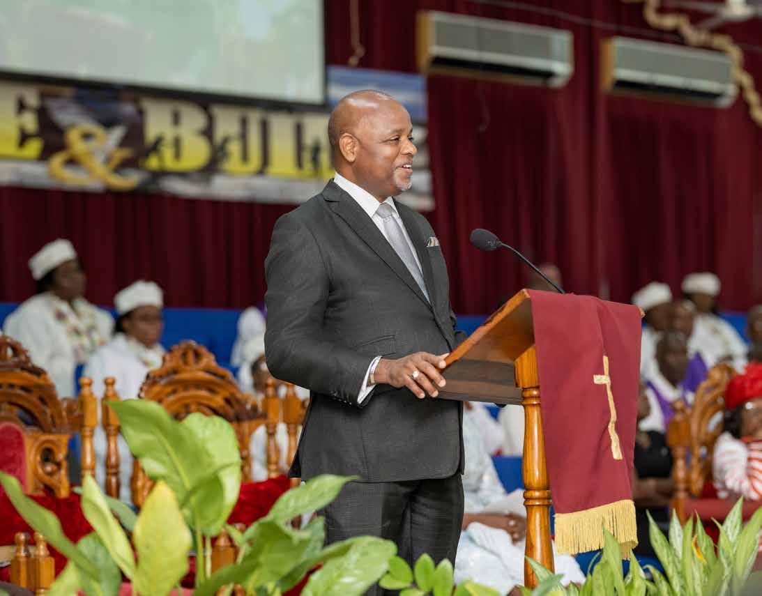 Dean-Roy Bernard, Permanent Secretary, Ministry of Culture, Gender, Entertainment and Sport, brings greetings at JADCO’s 15th anniversary service.
