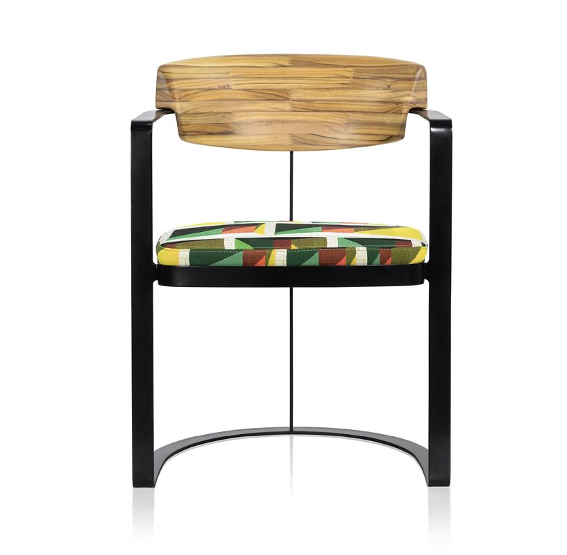 - Encosto e braço em aço inox pintado semi brilho.