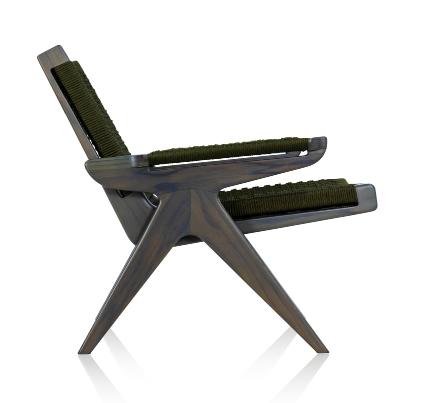 - Assento, encosto e braços em corda náutica transpassada.
