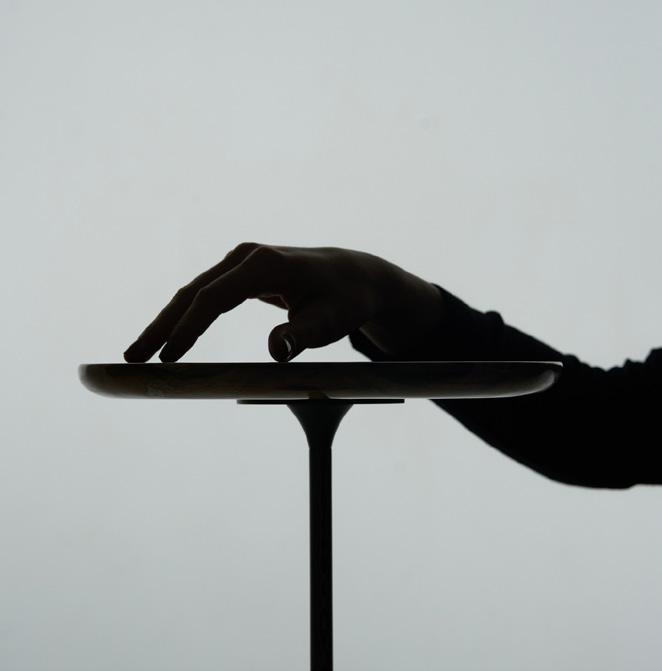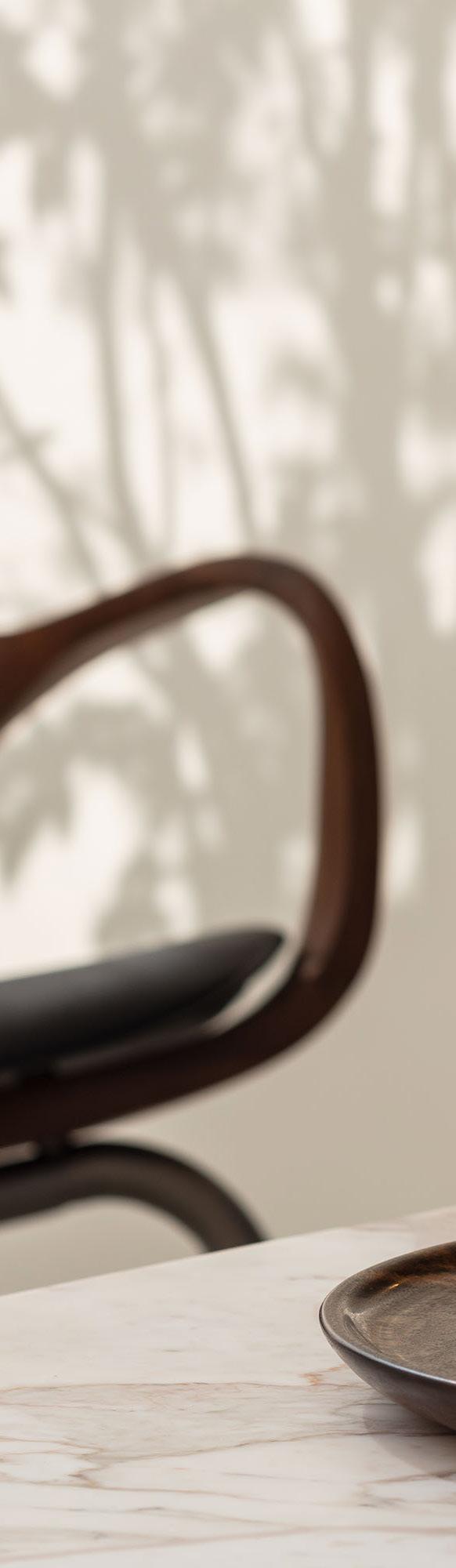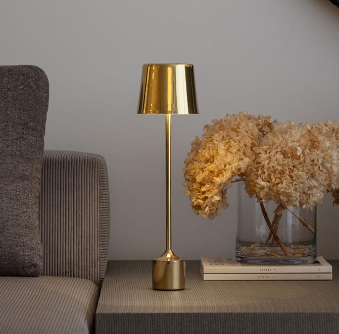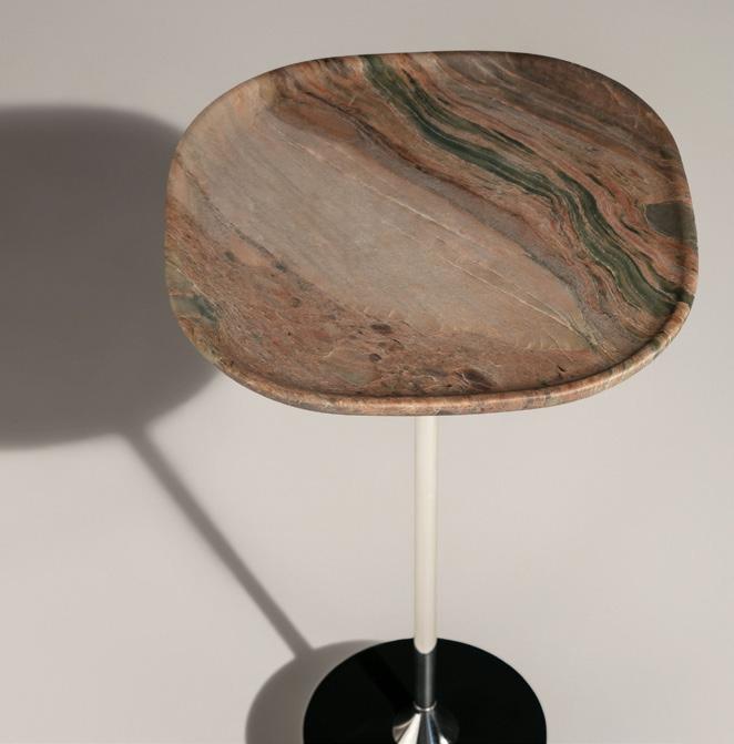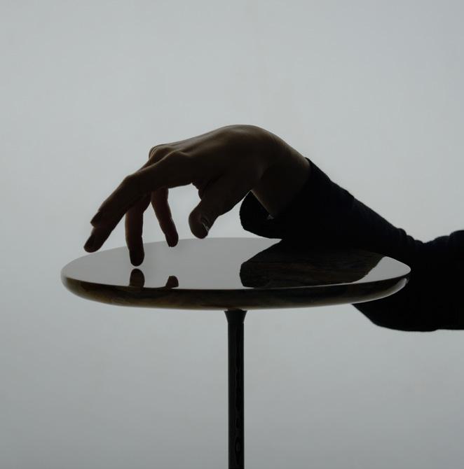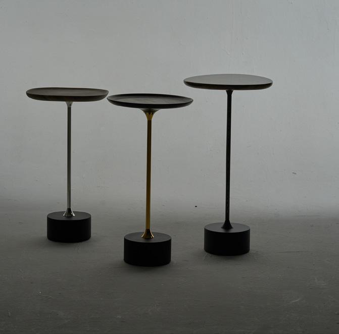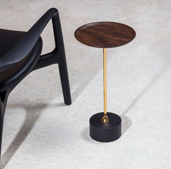 Enquanto as luminárias apresentamse em latão e em pintura bronze, tanto nos modelos à energia elétrica ou à bateria; as bandejas apresentam técnicas inéditas, como a de composição de rochas para o modelo sem alça, e de base em imbuia maciça com haste em aço damasco. Assim como os apoios, todas essas peças são perfeitas para qualquer ambiente.