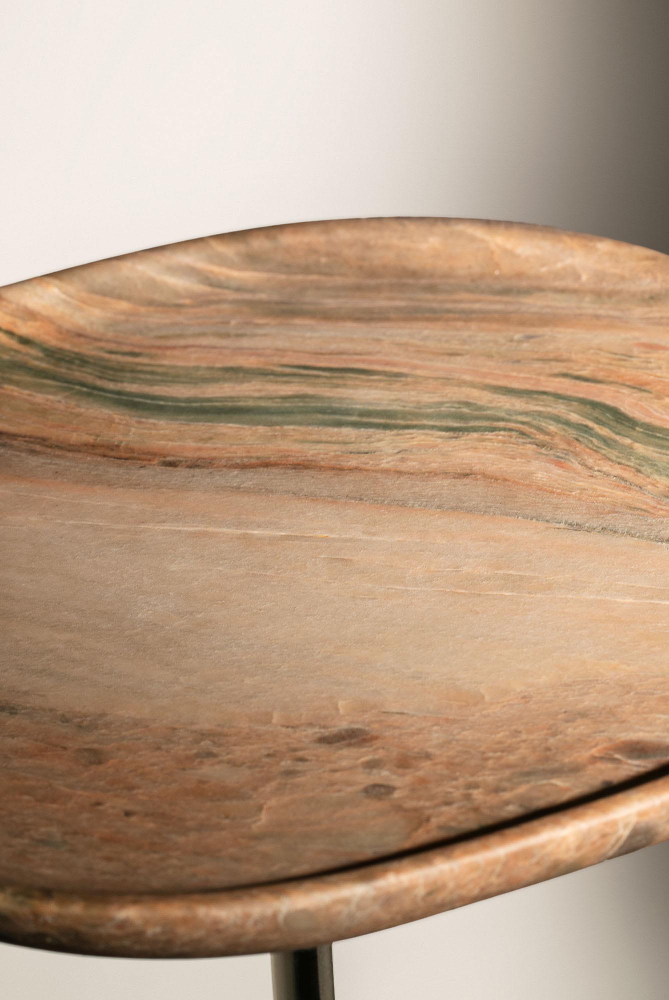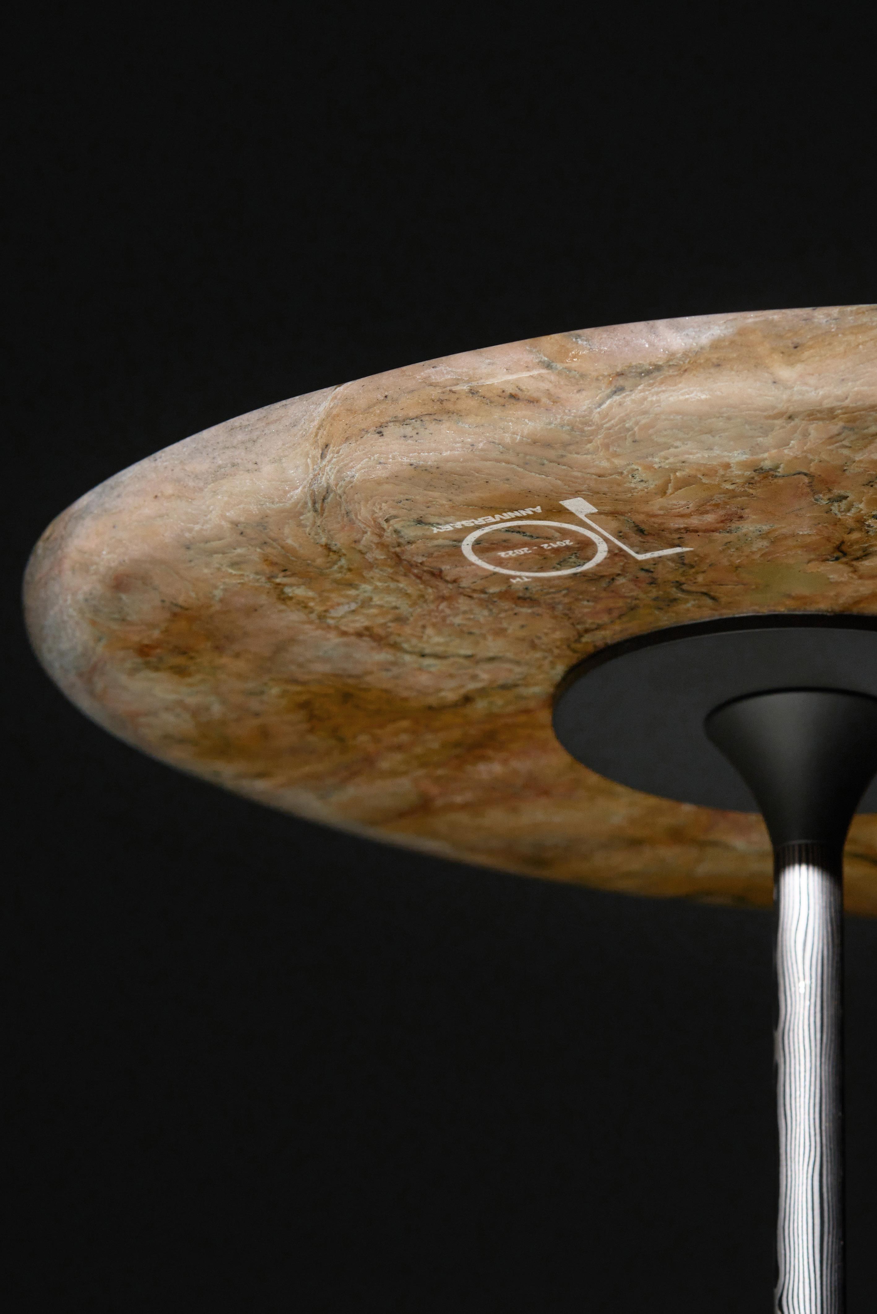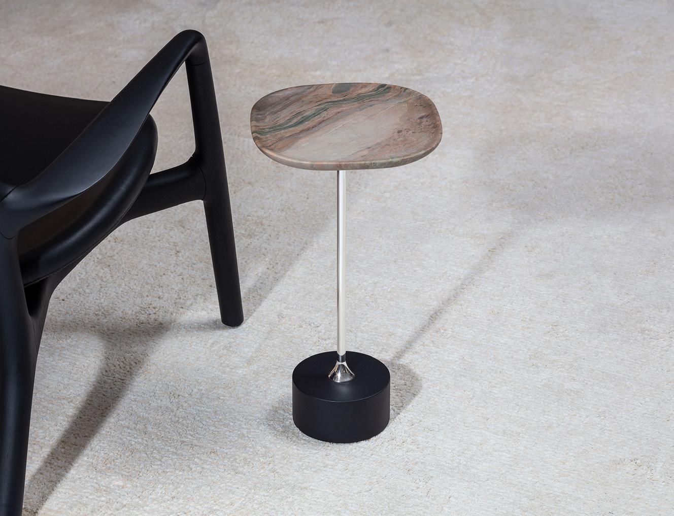 “La mesa jardím es una joya de mesa lateral para cualquier espacio. Ya sea en pareja o solo, agregará ligereza junto a muebles modernos y contemporáneos. Los materiales crean diferente reacciones emocionales desde calmantes hasta energizantes. Hay más de 100 combinaciones diferentes para crear, tanto como en el diámetro superior y base.”