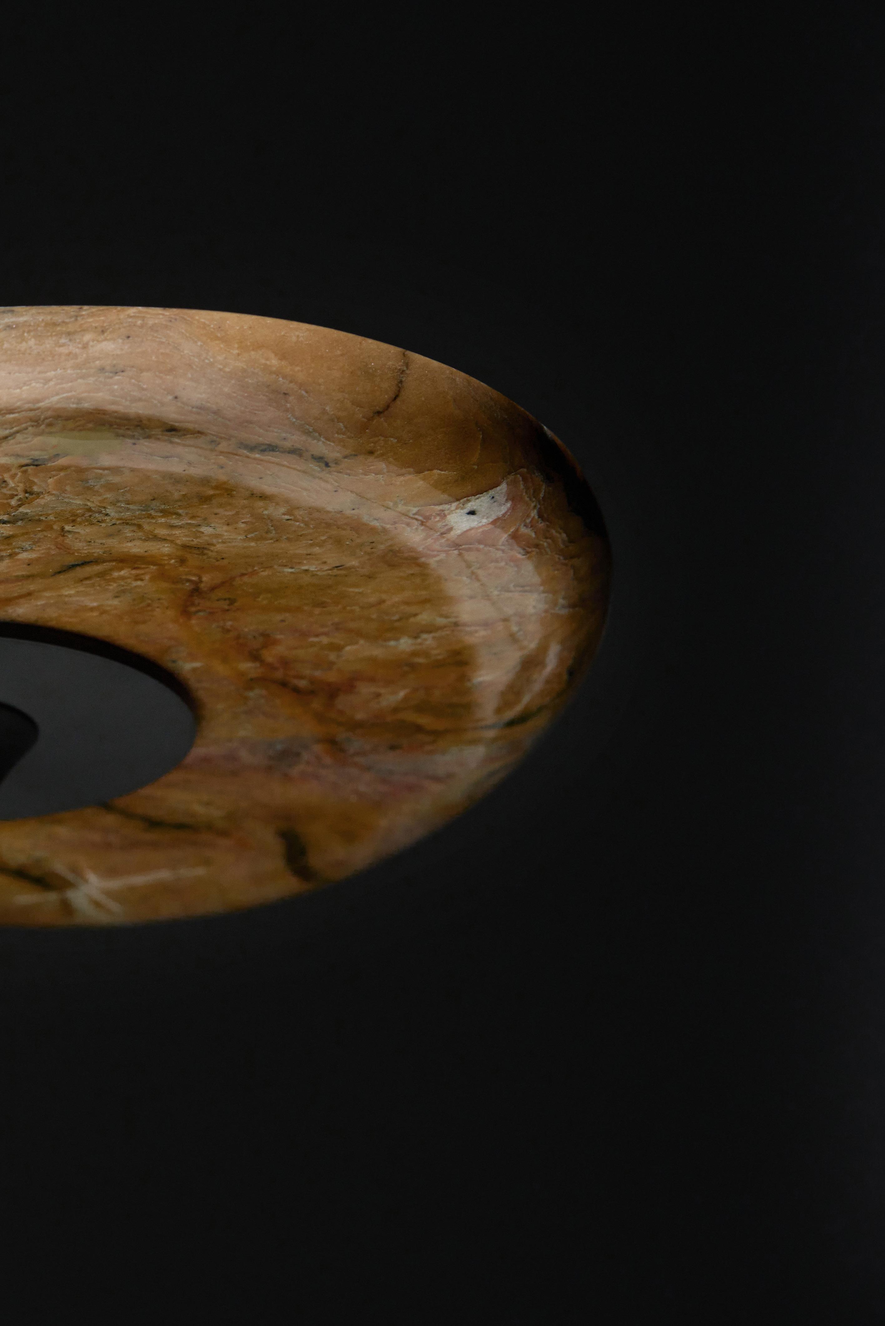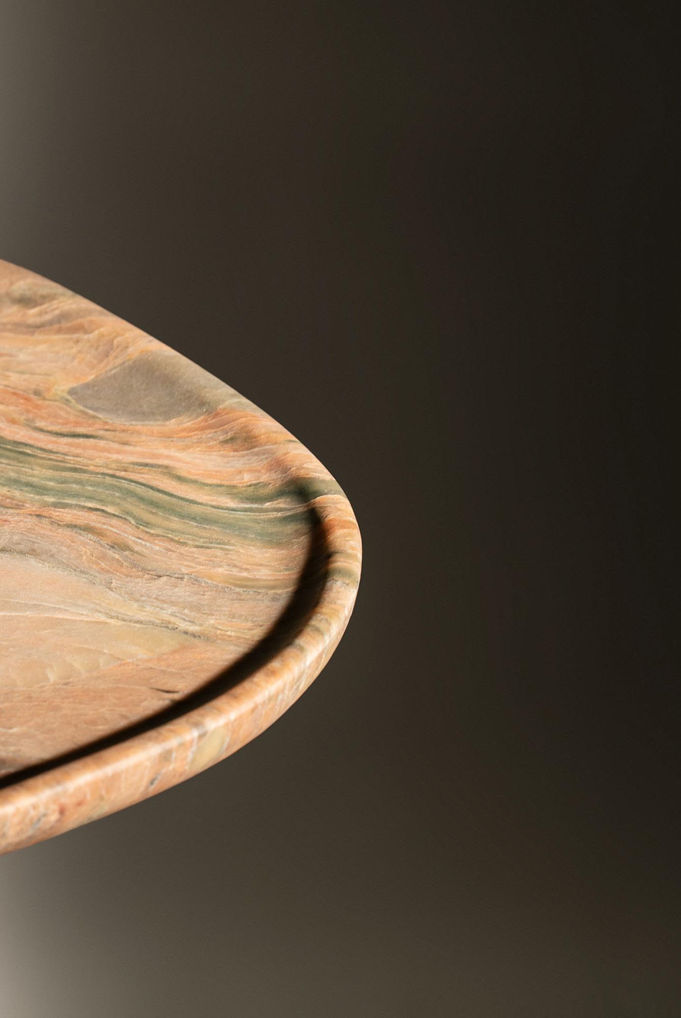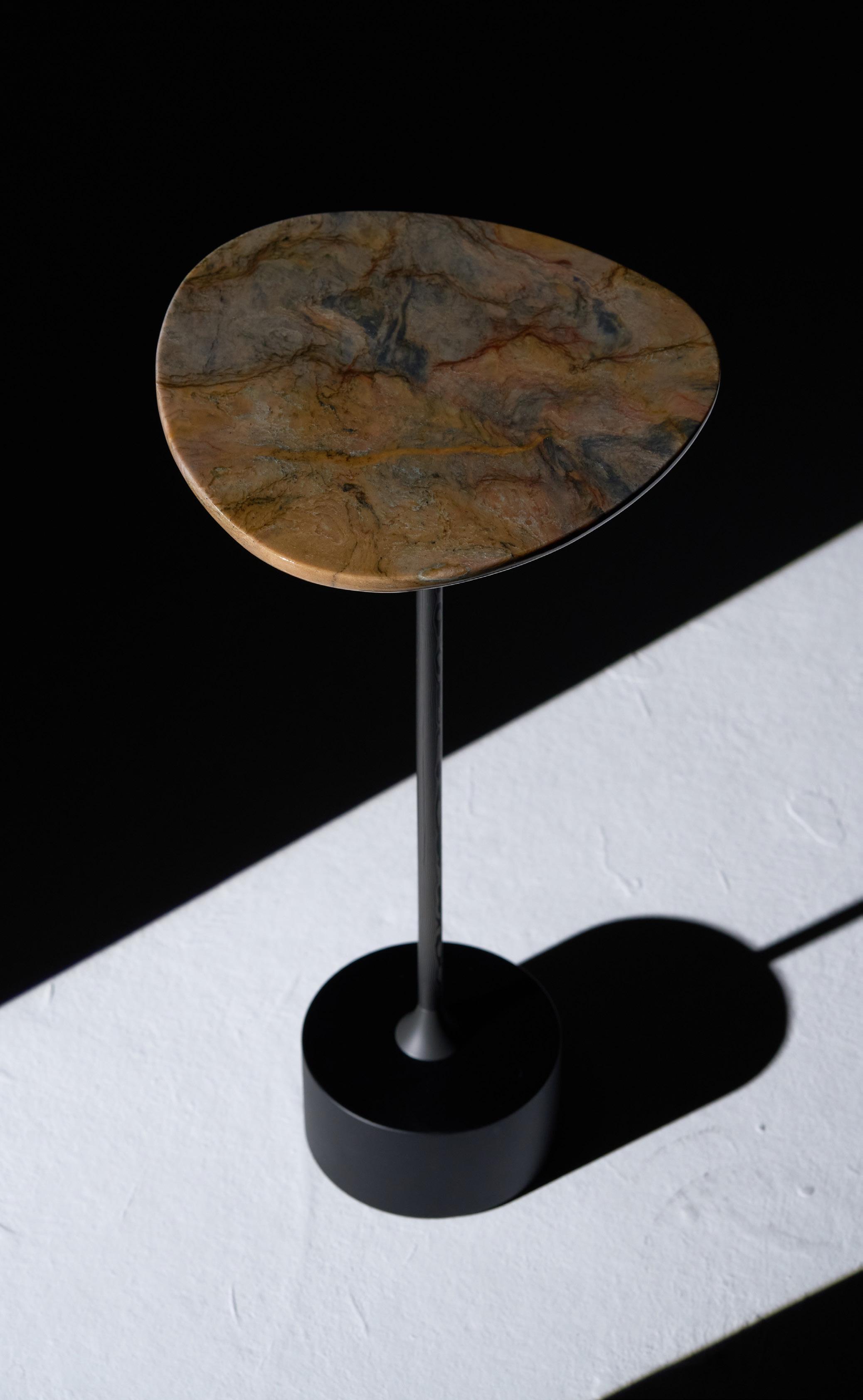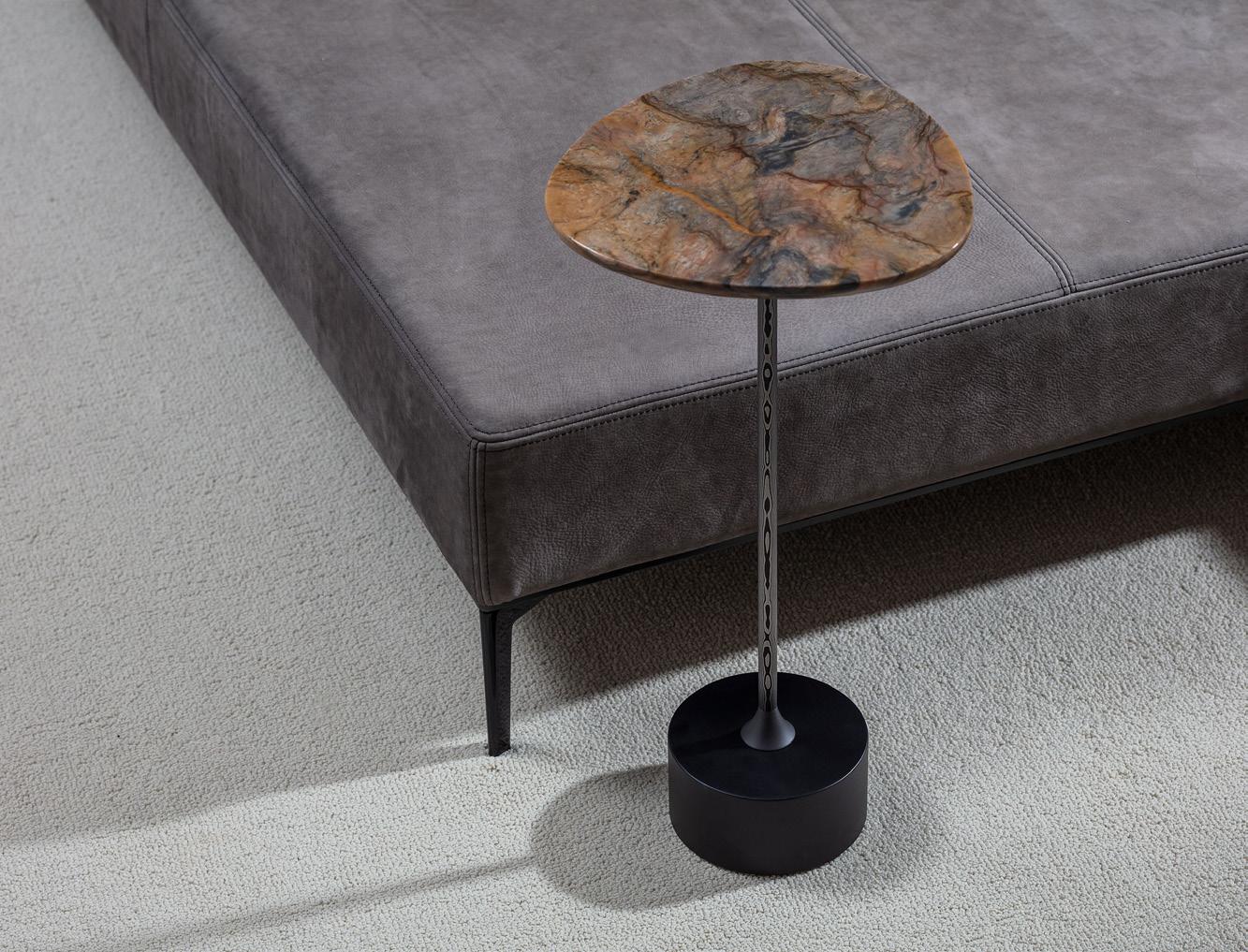 “La mesa jardím es una joya de mesa lateral para cualquier espacio. Ya sea en pareja o solo, agregará ligereza junto a muebles modernos y contemporáneos. Los materiales crean diferente reacciones emocionales desde calmantes hasta energizantes. Hay más de 100 combinaciones diferentes para crear, tanto como en el diámetro superior y base.”