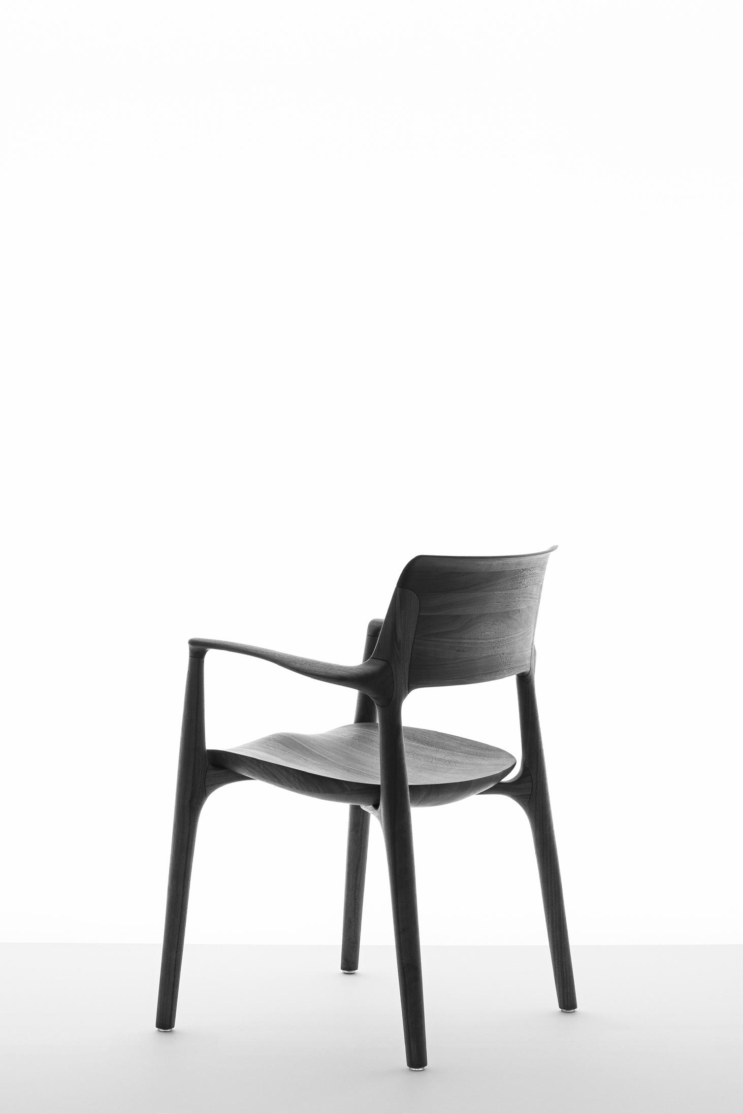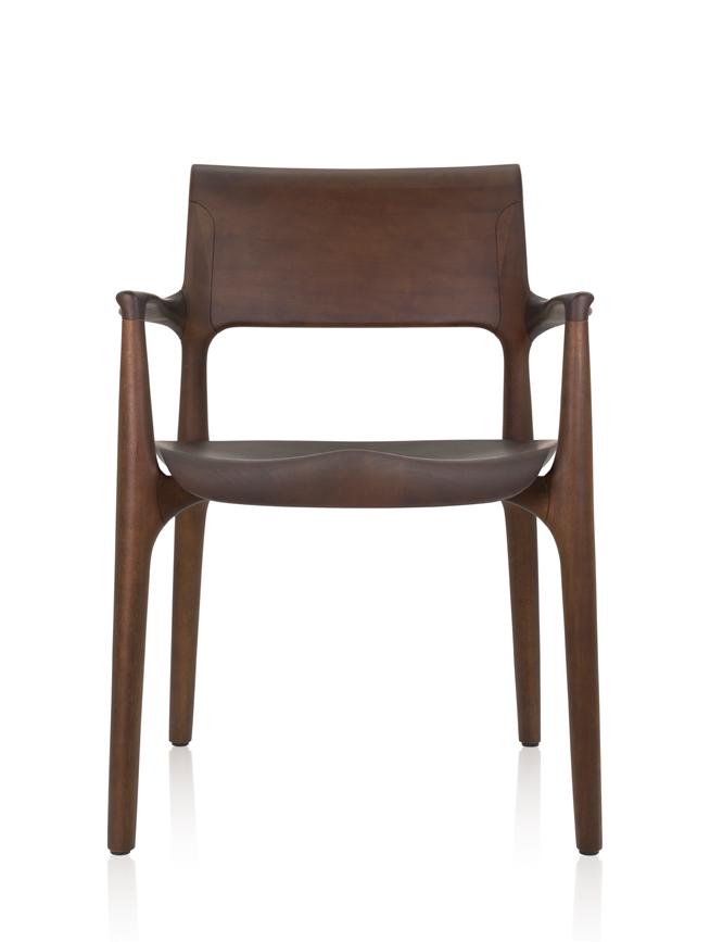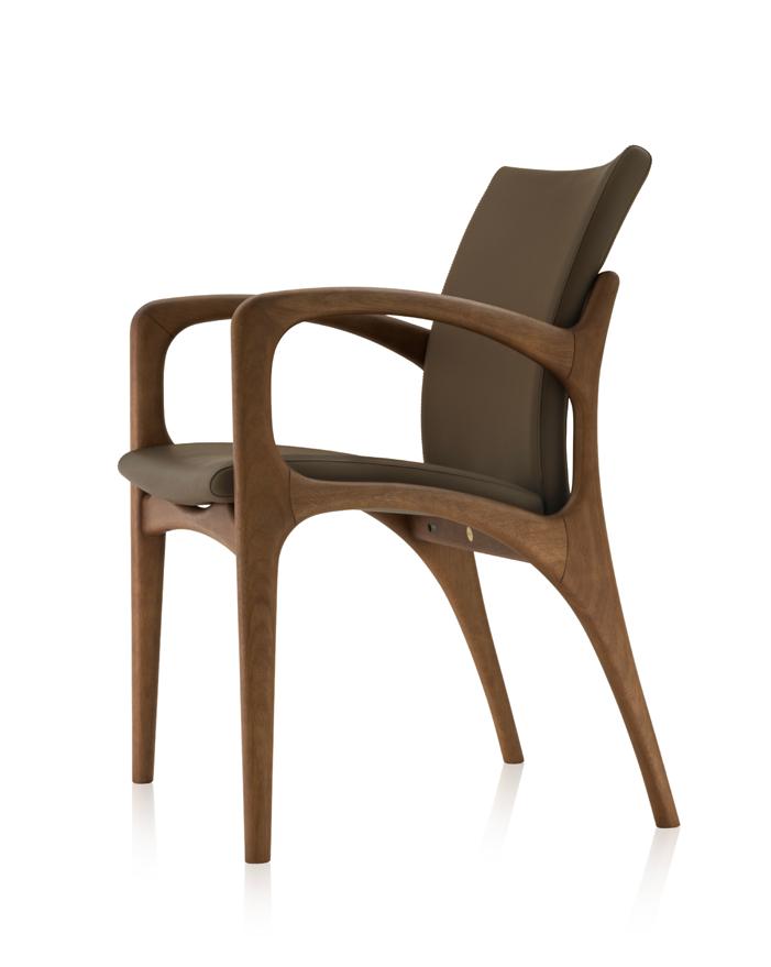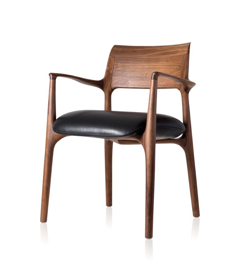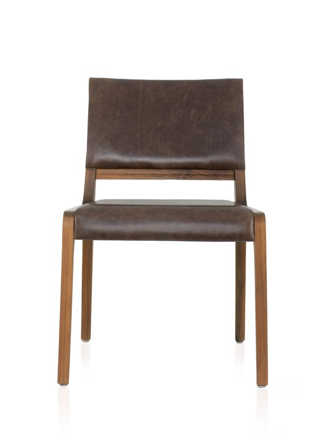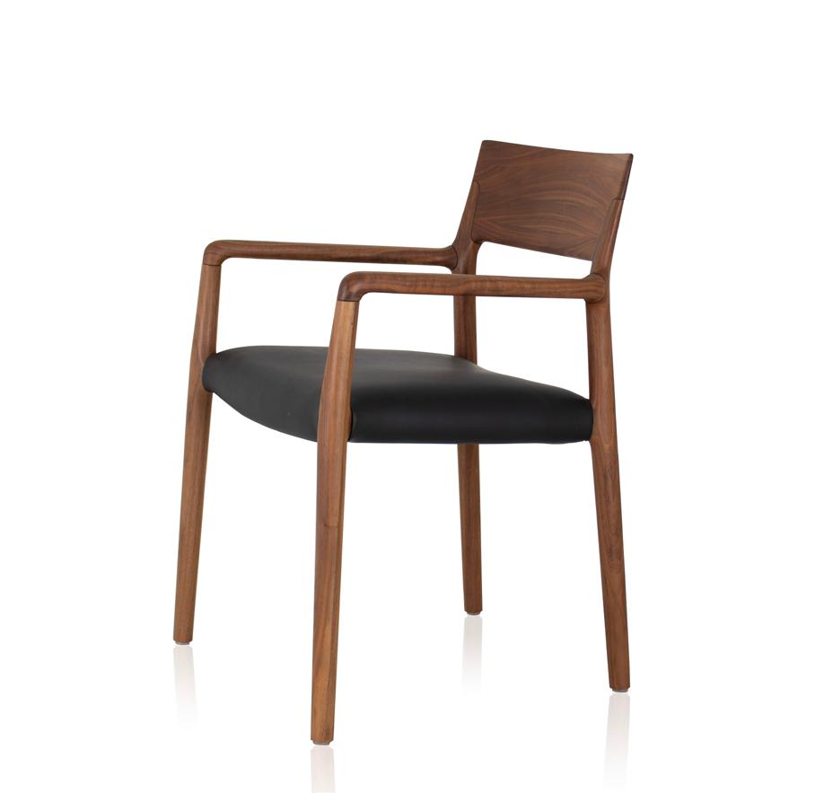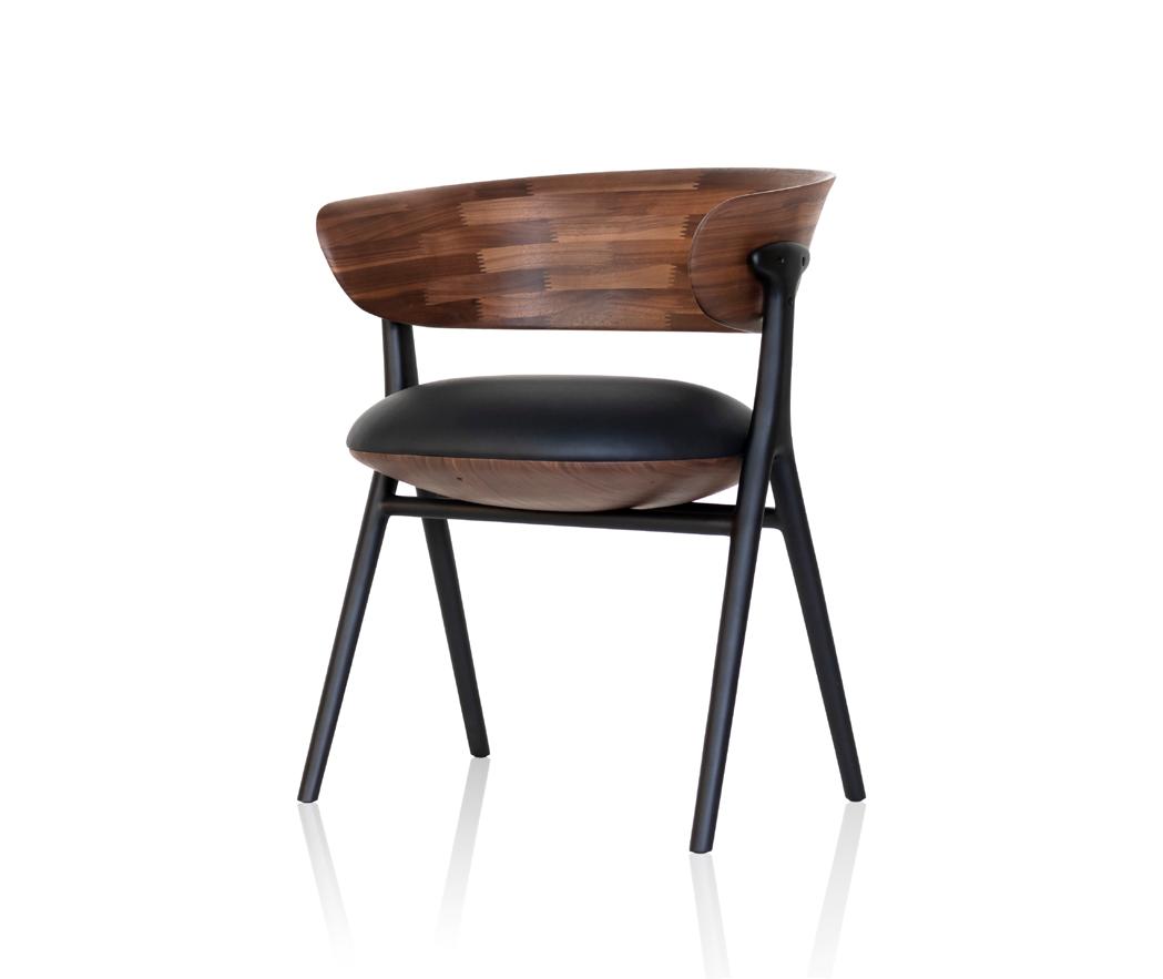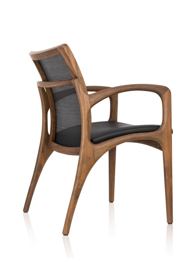 Estrutura: Nogueira natural; Assento: Couro black matte.