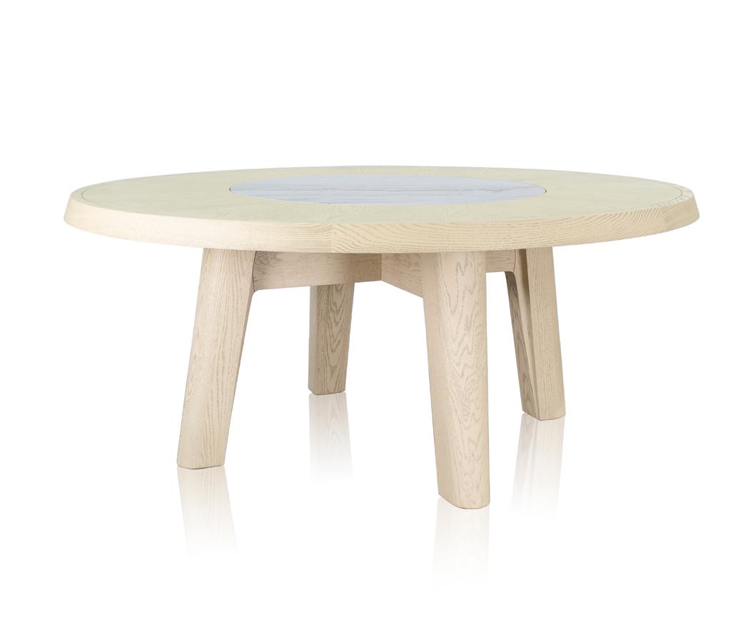 Estrutura: Tauari carved tingimento areia; Tampo: Mármore rafaello fosco.