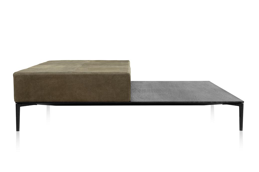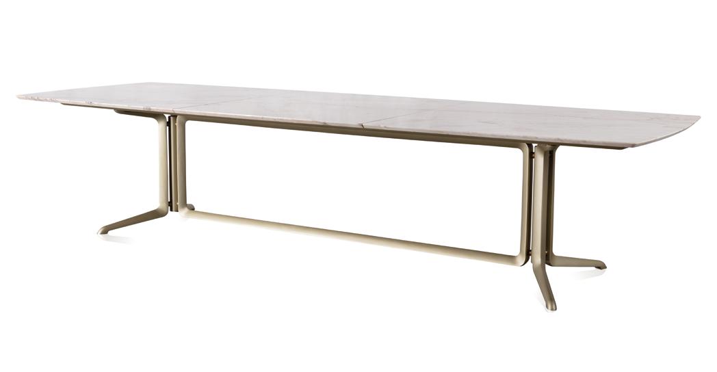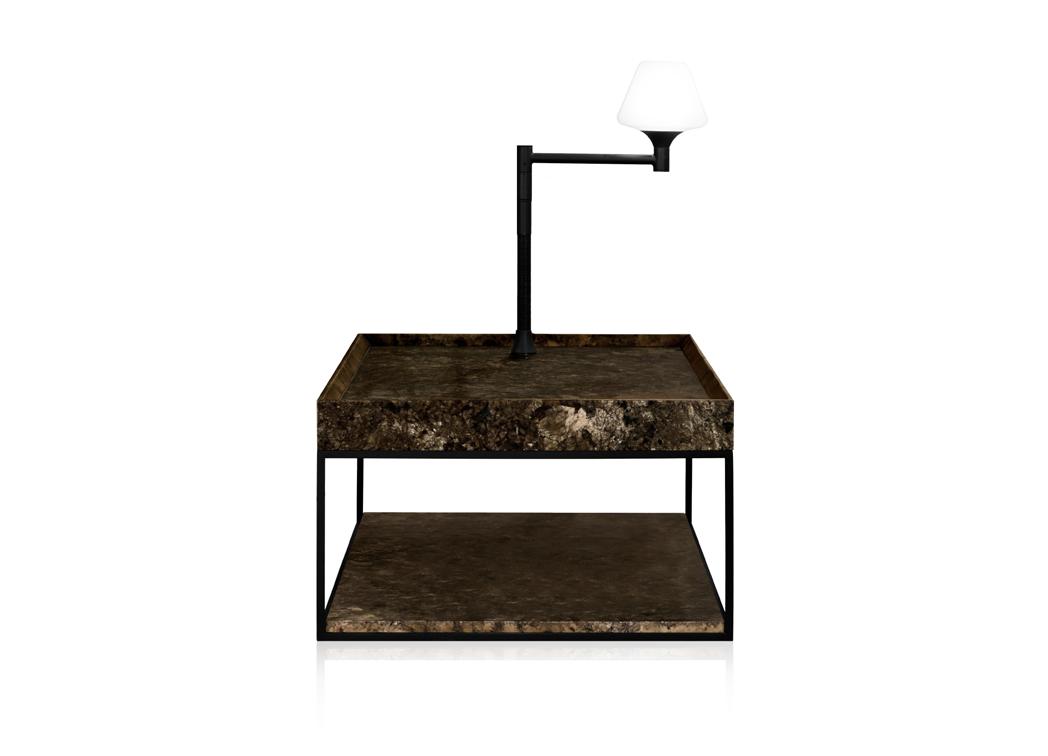 Tampo: Mármore emperador fosco; Base e longarina: Aço carbono preto microtextura; Filete: Tauari.