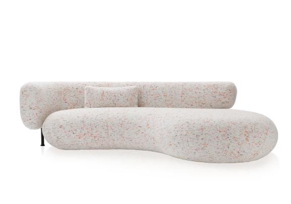 Revestimento: Tecido Confetti; Base: Aço carbono preto textura.