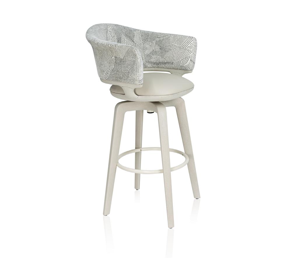 Revestimento: Tecido strawberry vanilla guardian; Base: Lâmina lavado maquinado; Versão com 2 braços.