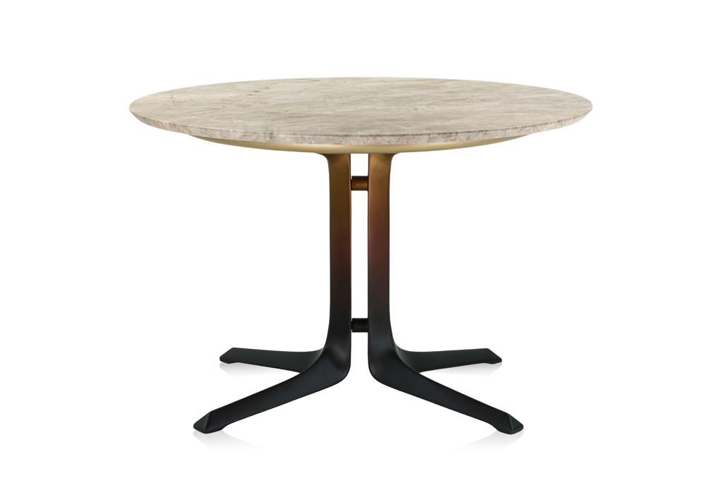 Estrutura: Aço carbono preto microtextura; Tampo: Mármore coliseu fosco;