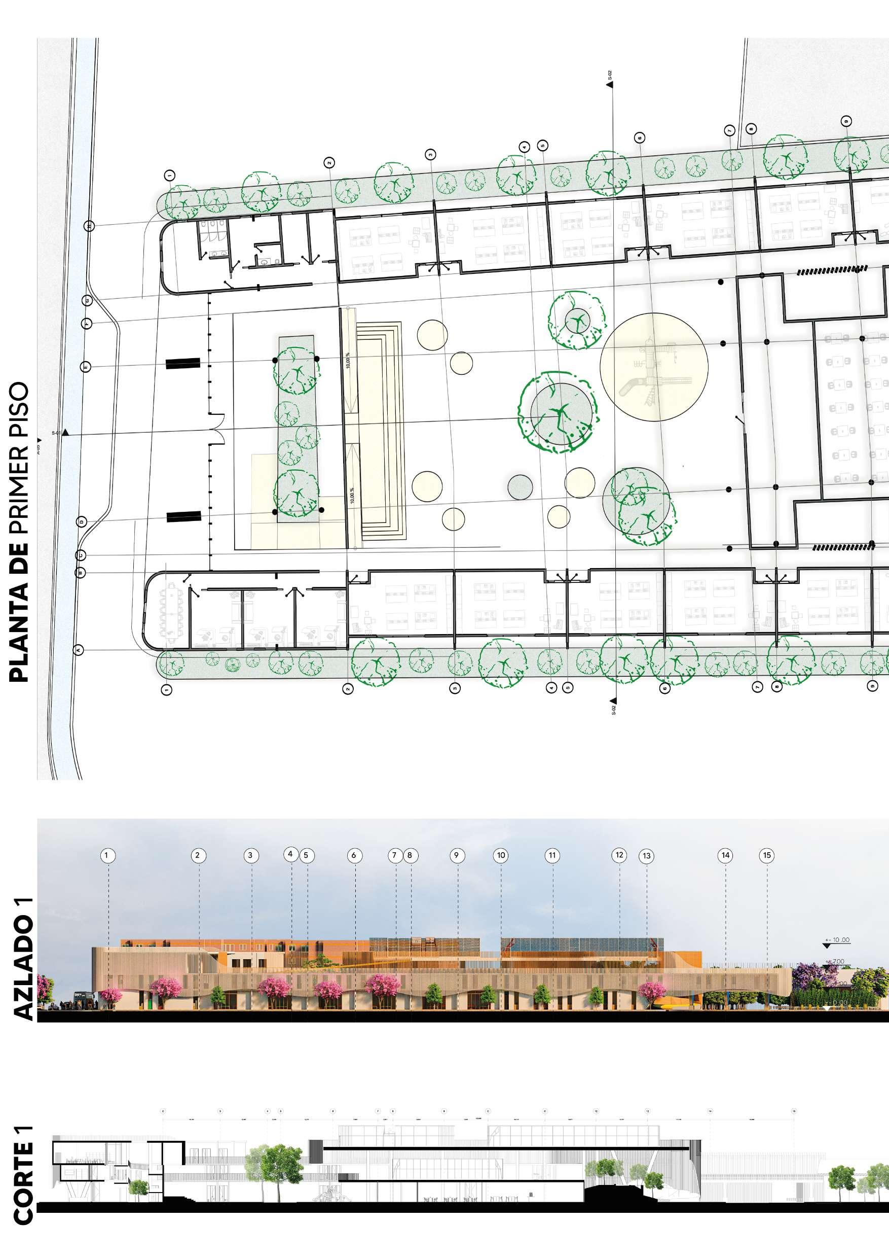 Architectural Survey ELEVATION FRONT 0.723 5.033 1.914 1.482 2.101 0.931 1.500 0.114 0.092 0.444 0.222 0.092 1.950 5.345 0.663 0.175 0.639 0.202 2.575 2.242 1.925 1.218 0.500 0.500 1.950 1.345 0.185 1.699 2.994 GROUND FLOOR L. + 2.540 L. + 2.740 L. +/- 0.000 FIRST FLOOR L. + 5.576 L. + 5.776 L. + 8.597 ROOF L. + 8.167 LOFT ffi ELEVATION FRONT 6 1:75 DIAZ J 4.887 2.010 0.296 0.359 0.541 1.163 0.660 0.490 1.917 0.537 1.750 2.503 0.950 3.613 0.150 2.048 A 5.345 6.568 6.923 1 2 3 0.454 1.813 1.500 0.200 0.200 2.501 0.239 1.130 0.242 7 8 N. -0.150 N. -0.550 PORCH 1 ENTRY 2 STAIRS 3 LIVING ROOM 4 BATHROOM 5 DINING ROOM 6 KITCHEN 7 REAR GARDEN 8 MASTER BEDROOM 9 BEDROOM - 01 10 BEDROOM -02 11 1.840 2.950 1.370 1.141 0.363 0.839 2.662 0.140 1.289 0.650 0.140 0.704 0.404 0.663 0.566 0.829 0.758 0.220 2.661 A 0.430 9.383 1 2 3 4 9 9.783 0.843 5.345 6.824 8 7 6 5 0.363 0.205 0.440 0.583 0.571 0.650 0.723 0.314 1.130 1.200 0.527 0.264 1.851 0.200 0.099 0.726 0.377 0.238 3.718 0.851 N. + 0.000 B B 4 5 1 3 2 6 ffi GROUND FLOOR PLAN 3 1:50 ESC N DIAZ J CONCURSO AFRICAN SCHOOL