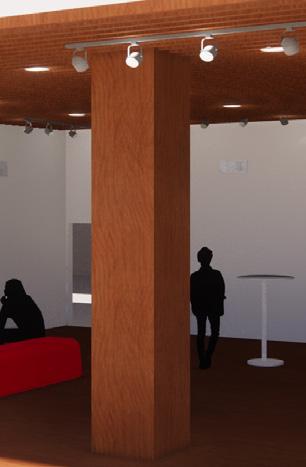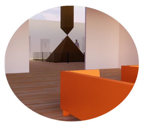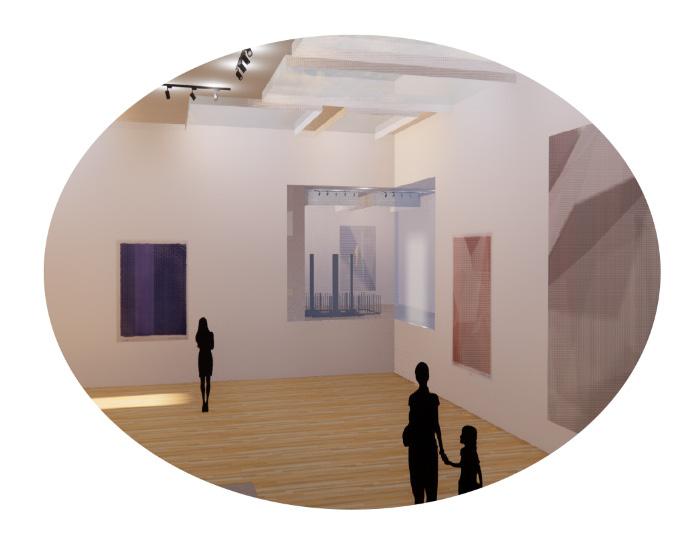 The floor plan is designed to capture multiple views at once. Depending on where you are in the gallery, you can see the artwork in the adjacent spaces. The purpose of this is to connect the artwork despite being in different rooms as well as to entice the user to visit the other artwork. Even when in the waiting area, you are greeted with views of the artwork and sculptures