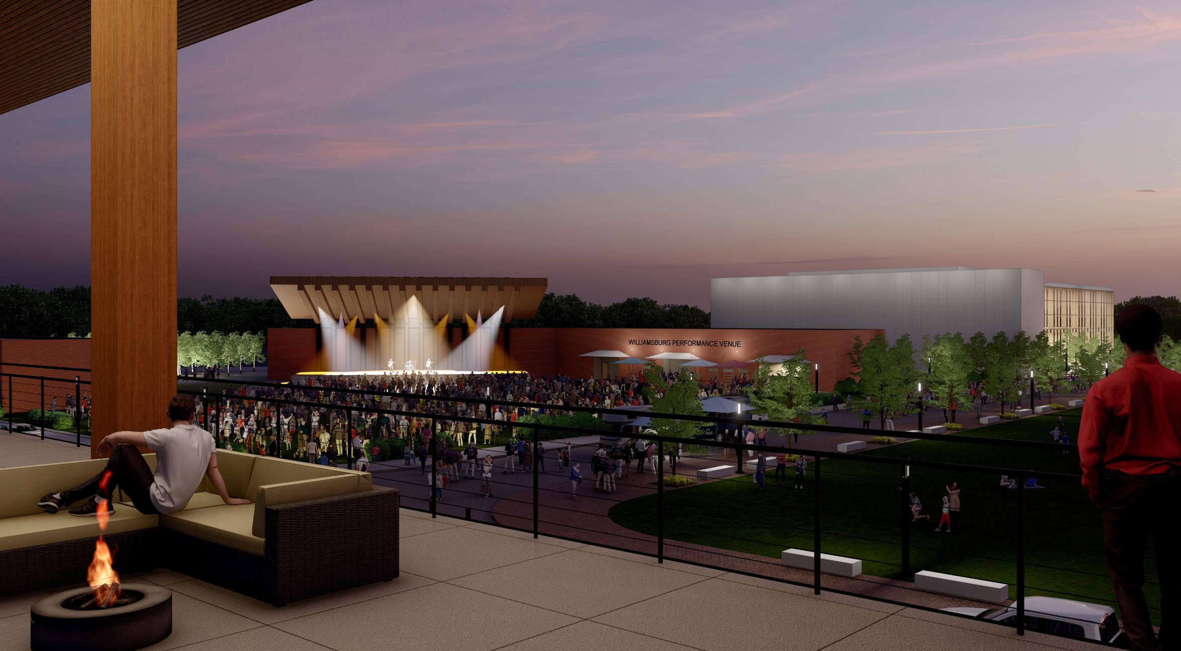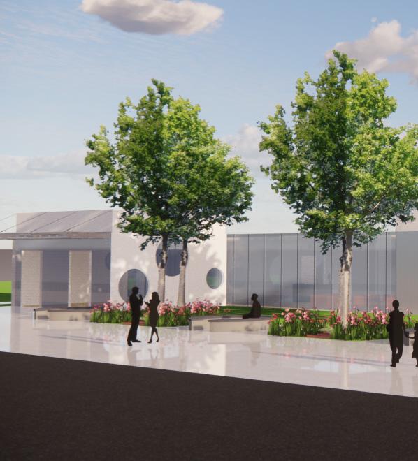 Over the summer of 2023 for my internship, worked on an Events and Sports Center in Williamsburg, Virginia. This venue would be a great economic and social boast for Williamsburg and future development. To the right are sketches and notes for parts of the plan and the site plan. We were wokring on ways vistors would approach the venue as well as capturing views from different angles including the view from the terrace of the sports center looking out at the music venue. The image on the right shows the front entrance/lobby and we focused on fufilling the client’s needs and creating a very welcoming and exciting environment.