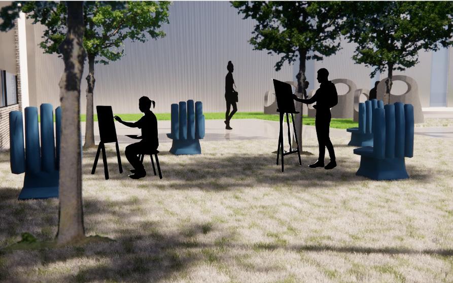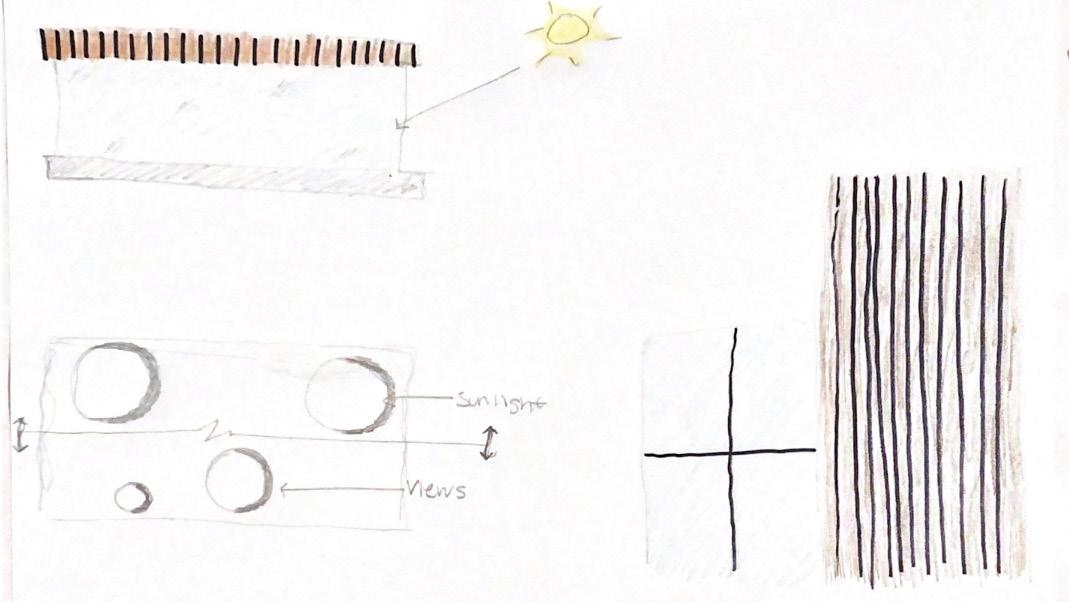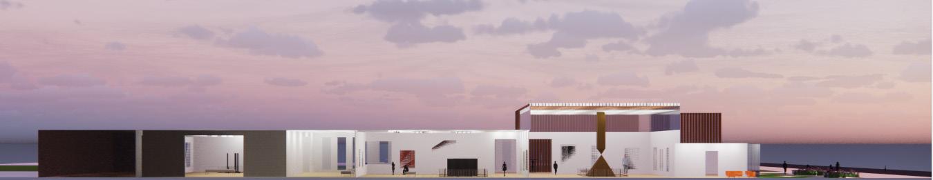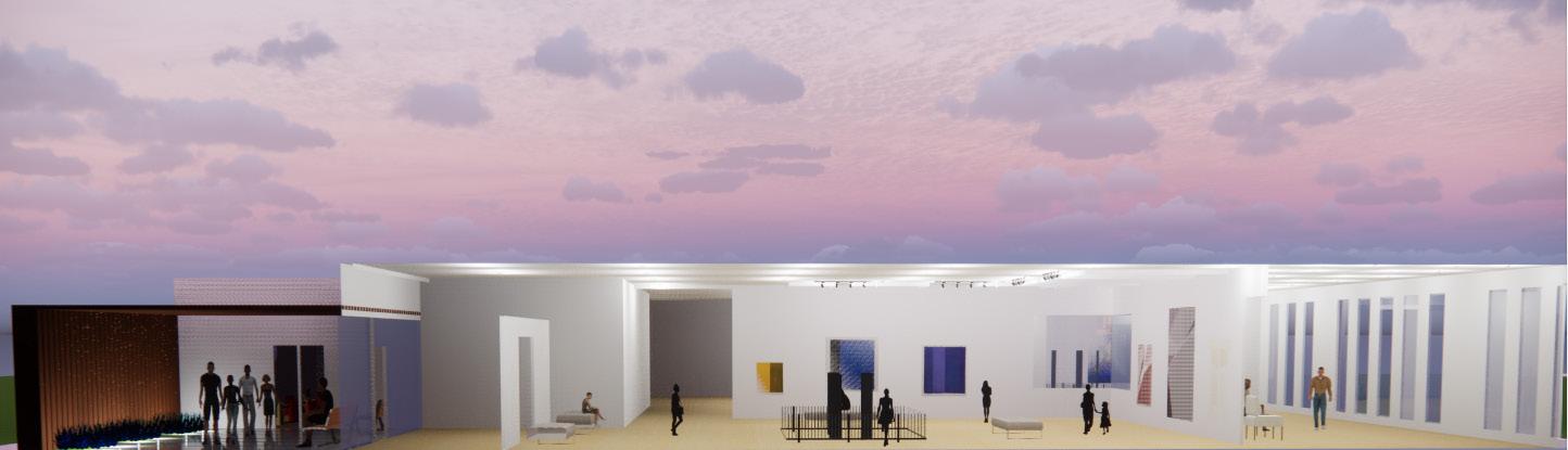 These set of iterations helped to finalize the overall design. It was important to capture lighting throughout the day with the use of skylights and high windows. The circular windows serve a few different purposes. The circular windows closes to the top of the facade are used to capture sunlight, the circular windows closes to the bottom of the facade are used for views and the use of the windows adds dynamic to the overall facade and the concept. The material palete consist of an aluminum facade with hints of wooden panels. The wooden panels are positioned in locations defined as “transitioned spaces” in whcih vistors transition from space to space. The two materials and color paletes cooresponds well to one another, providing necessary contrasts. In addition the white glossy walls to provide complete focus on the paintings and sculptures. Track lighting and recessed lights will also help to illuminate the space and focus attention on the artwork.The form of the building is elongated to fit the site and provide an easy flow for vistors.