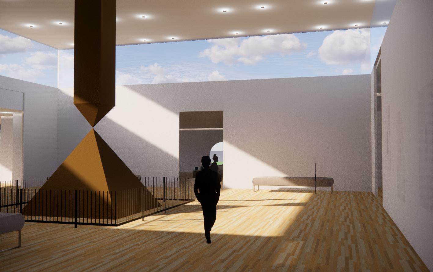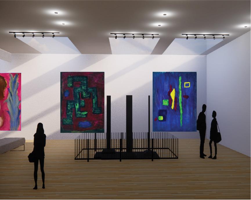 This art gallery desgined for a local art collector, wanted to exhibit paintings and sculptures from artist Barnett Newman. Located in Christiansburg, Virginia, the gallery holds 59,000sqft. These paintings are displayed to be sold, thus the layout of the space was designed to accomodate these frequent changes. The client wanted the spaces to be lit through natural lighting thus the use of skylights and high windows were able to accomplish those wishes.