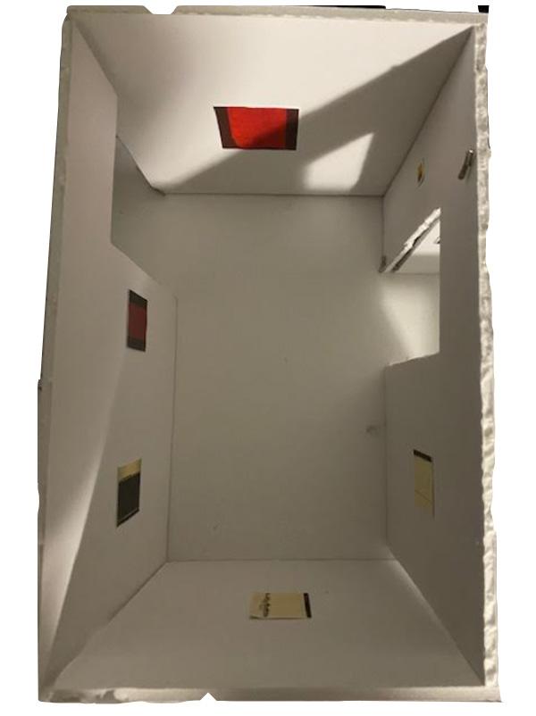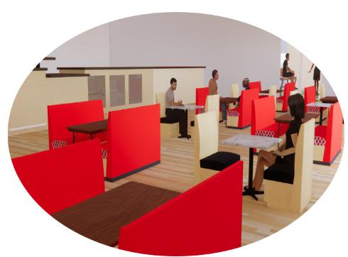 The diagram to the right displays a small foot pattern for vistors highlighted in red. Designed to create a continuous flow, there is an entrance and an egress door. The entrance gives access to the gallery spaces as well as the front desk, seating, and the co This is to help with the flow of traffic for vistors. Also the gallery has four different vestibule entrances