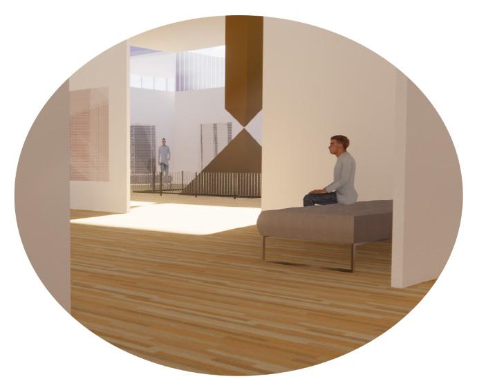 The facility is divided between loud and quiet spaces and short term and long term spaces. The “Language of Light” corridor helps to connect the different spaces and create a sense of playfulness within the design. The design studies below explore the different options the building can be placed on the site. The studies focus on the relationship with coleman place elementary school and the individuality of the nursing facility. The two have a cohesive relationship and the design layout create spaces in which the two groups can interact while also valuing the different purposes of each building.