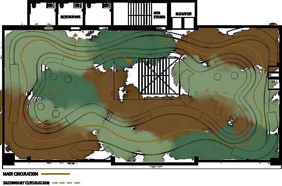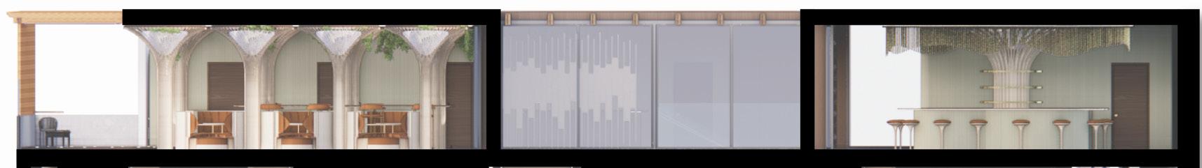 DESIGN SOLUTION: My partners and I created a structural element that radiates the feeling of entrapment or walking through a slender tunnel. Which led us to the name “Gulf.”