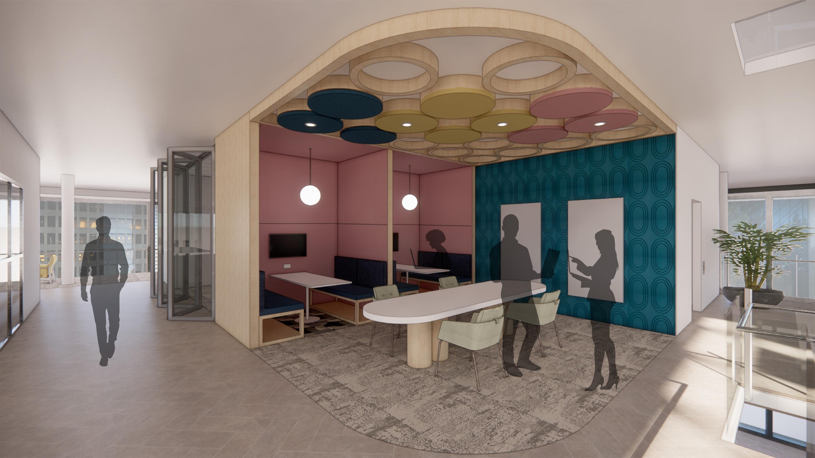 PERSPECTIVE VIEW COLLABORATION BOOTH TOP VIEW FIRST LEVEL - COLLABORATION SPACE