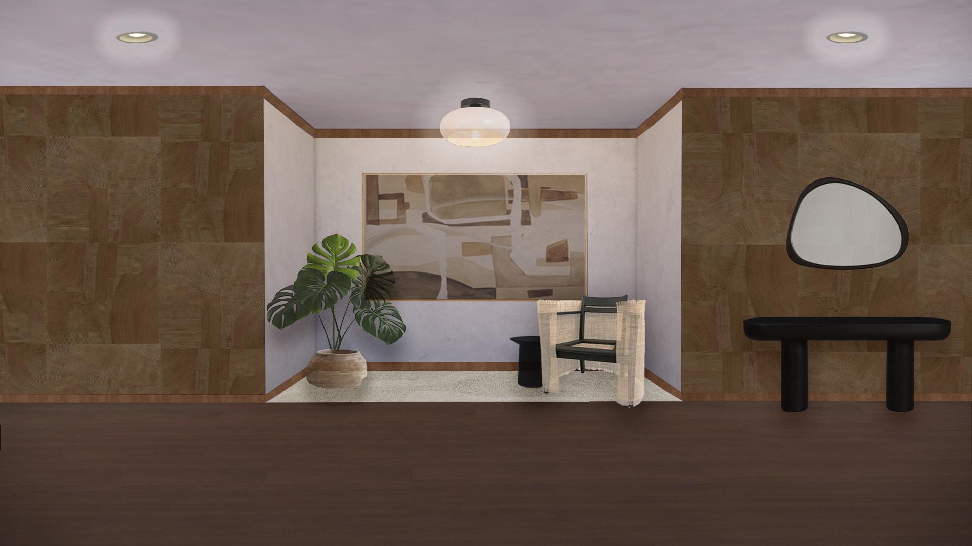 DESIGN APPROACH: “Noir Oasis” transformed into a surprise for my mother, seamlessly blending into the soothing tones of her home while embracing the natural charm of her biophilic environment through the use of rattan.